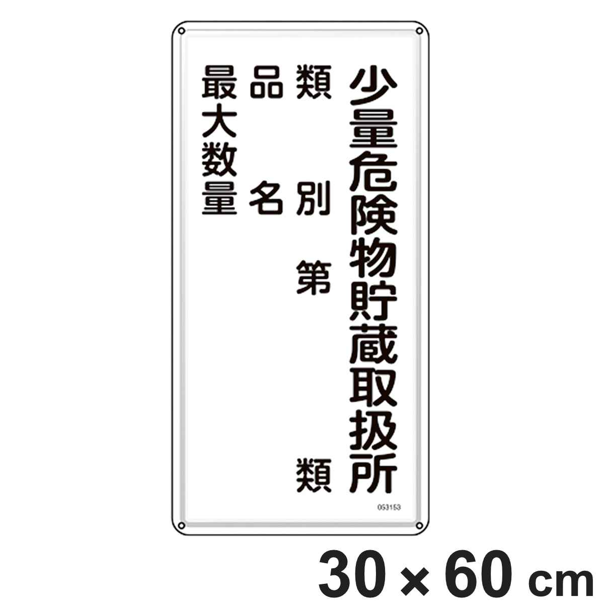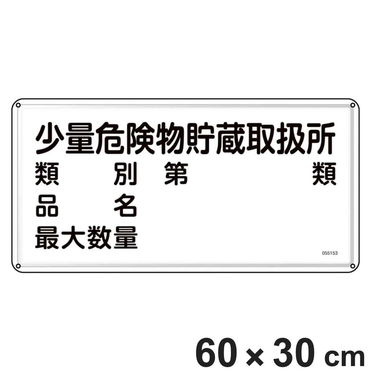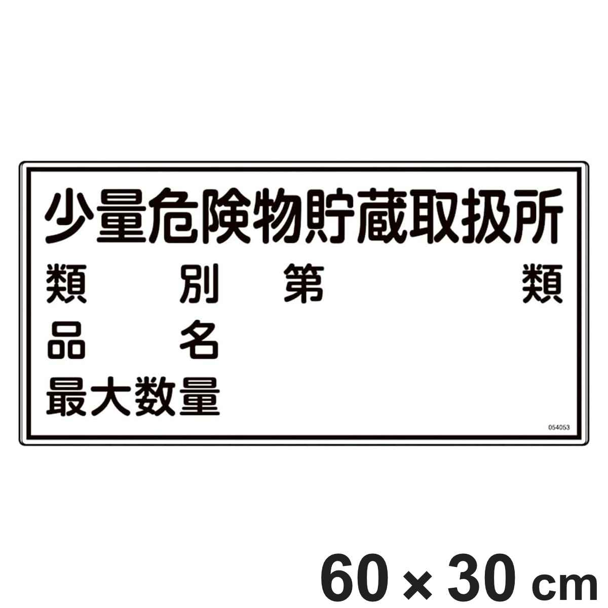 消防・危険物標識 「少量危険物貯蔵取扱所」 類別・品名・最大数量 KHT-53M 600×300mm 053153 ( 危険物 標識 スチール製 注意喚起 ネジ止め式 穴あき 屋外 安全用品 業務用品 標語 注意 喚起 標示看板 案内板 看板 )