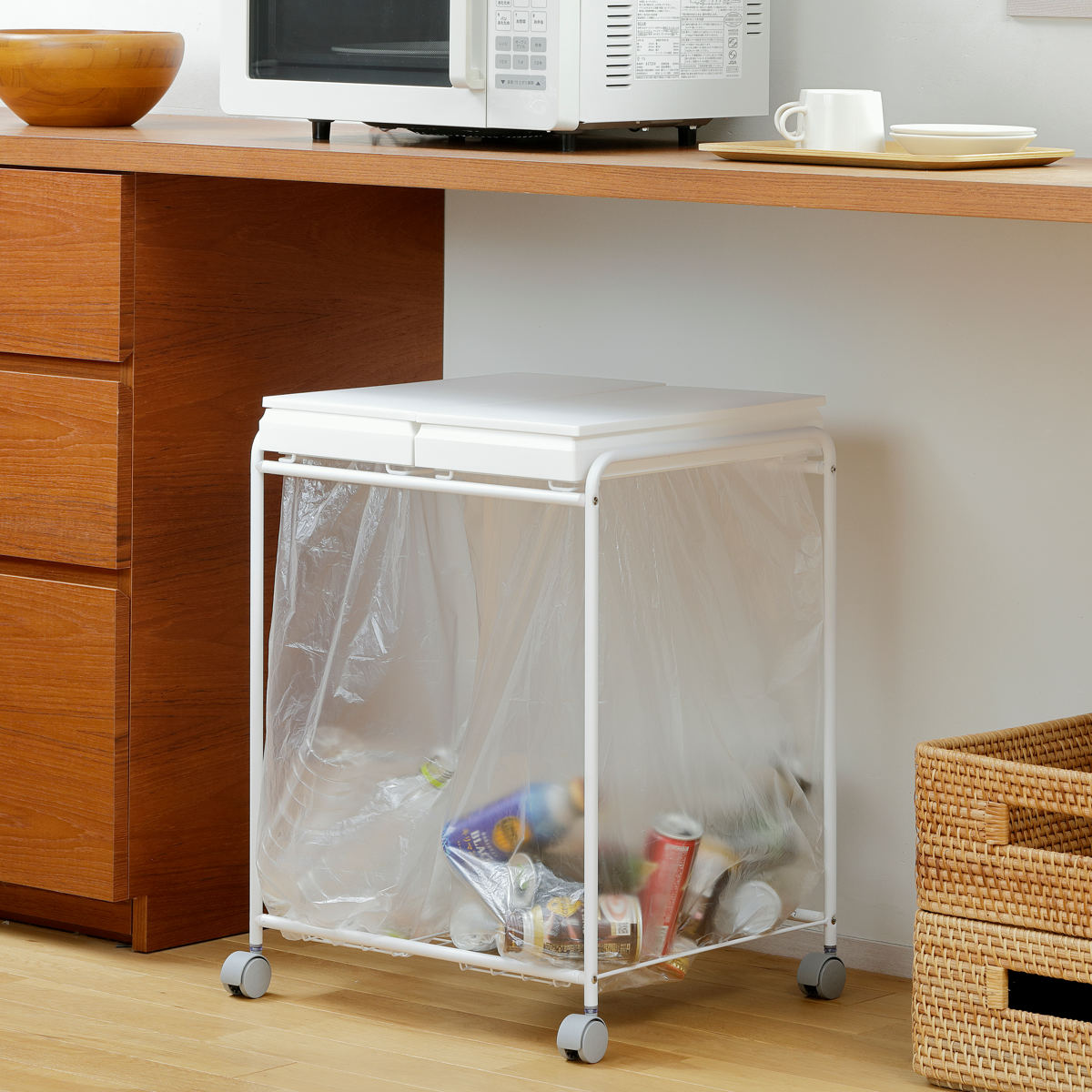 ゴミ箱 2分別フレームダストワゴン 分別 フタ付き ( ごみ箱 ゴミ袋スタンド フレーム ダストワゴン 大容量 キャスター付き キッチン 棚下 カウンター下 ) 【ホワイト】のレビュー