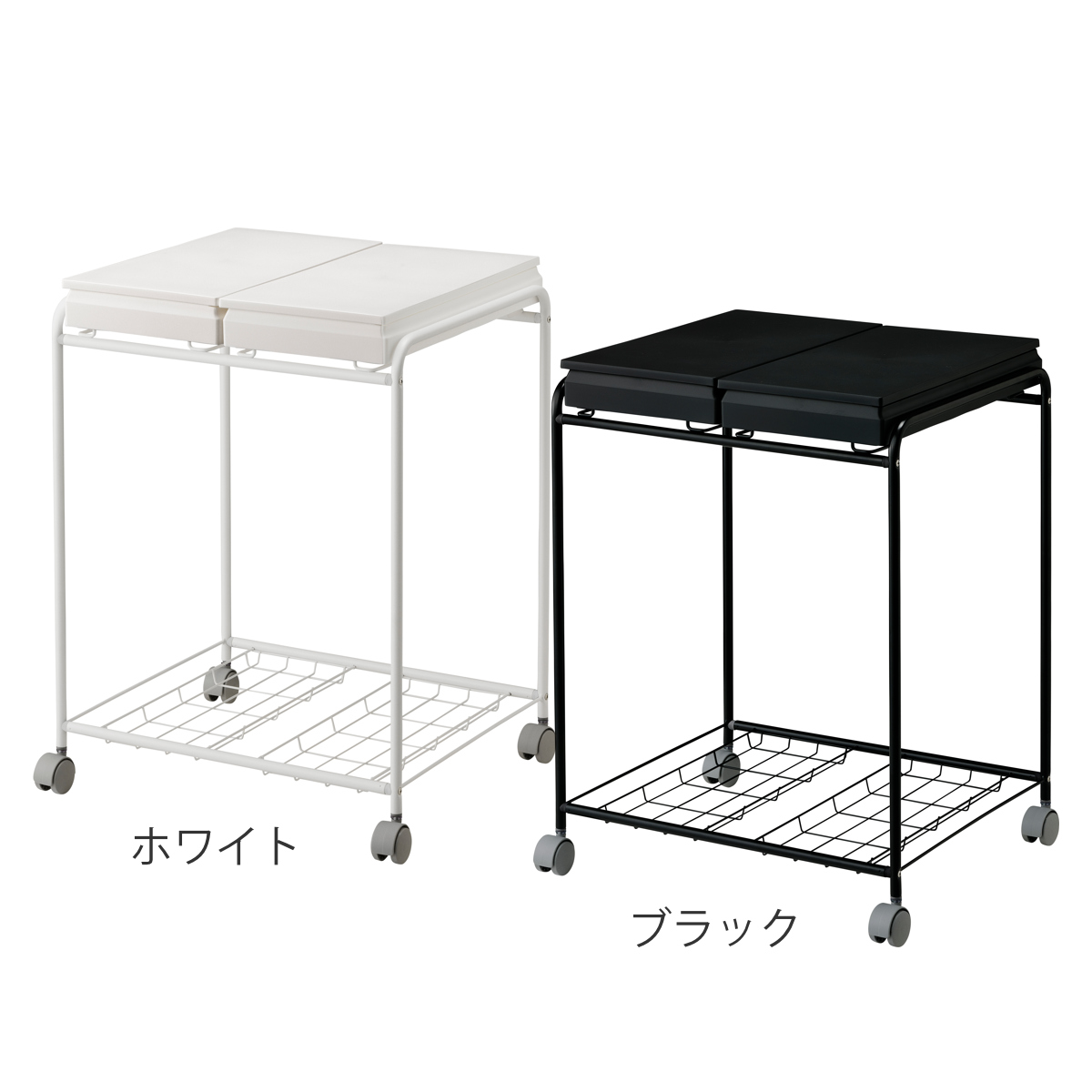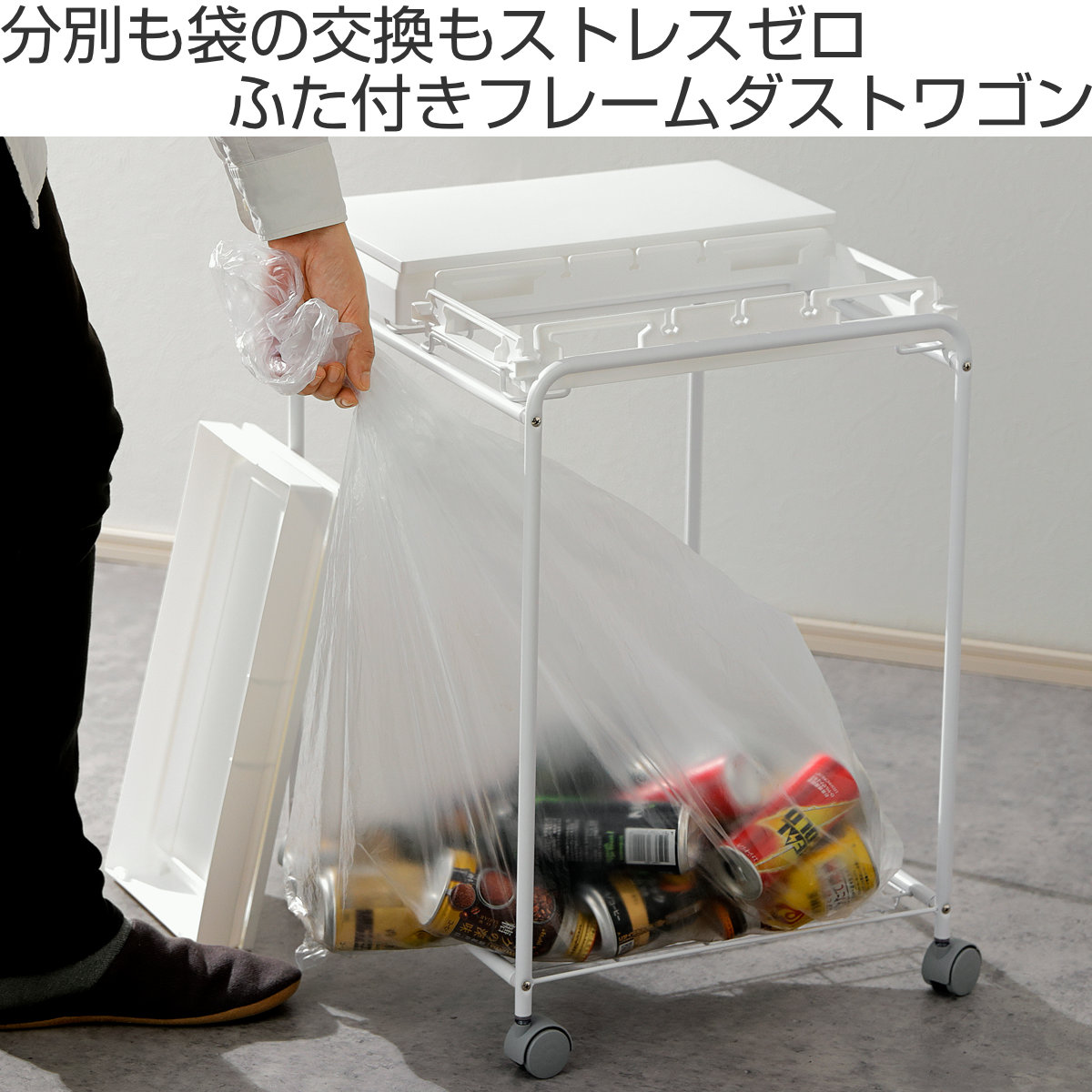 ゴミ箱 2分別フレームダストワゴン 分別 フタ付き ( ごみ箱 ゴミ袋スタンド フレーム ダストワゴン 大容量 キャスター付き キッチン 棚下 カウンター下 ) 【ホワイト】