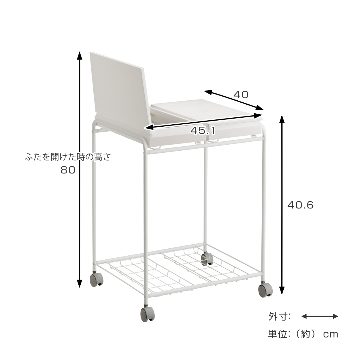 横開きのふたで開けた際の高さを抑え、棚下にもすっきり収まり使いやすいです。ふたを開けた際の全体の高さは約80cmです。