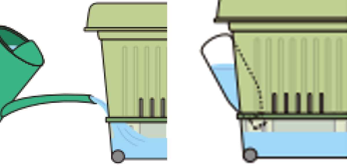 トレー側面には、じょうろなどで給水しやすい補給口が付いています。給水口にペットボトルを差しておけば、長期間の外出をしても安心です。また、水のこぼれを防ぐためベランダや玄関を汚さず使えます。