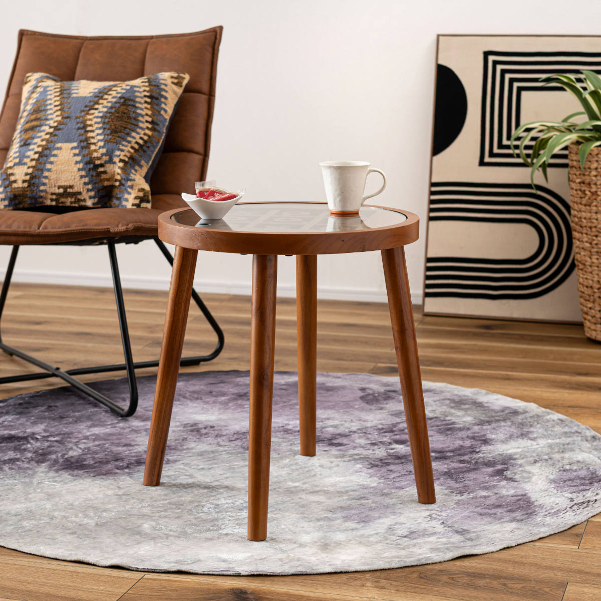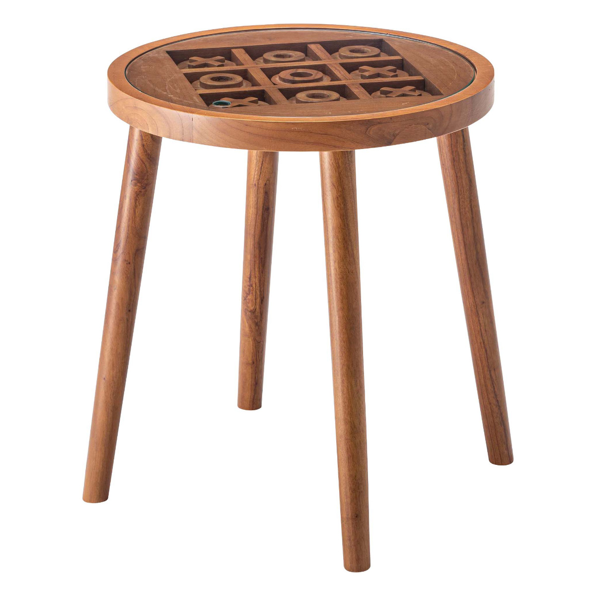 サイドテーブル 高さ50cm 天然木 ボードゲームテーブル ( 木製 ミニテーブル テーブル ソファサイド 丸型 ガラステーブル 〇×ゲーム 遊べる 強化ガラス コーヒーテーブル ベッドサイド 木製テーブル カフェテーブル 丸テーブル )