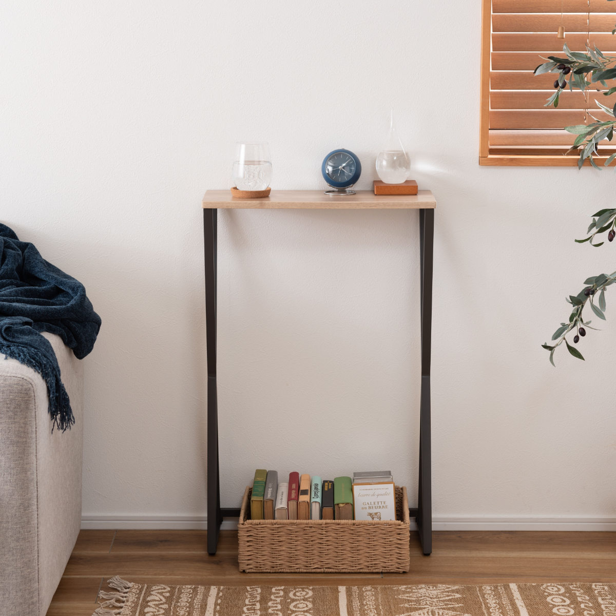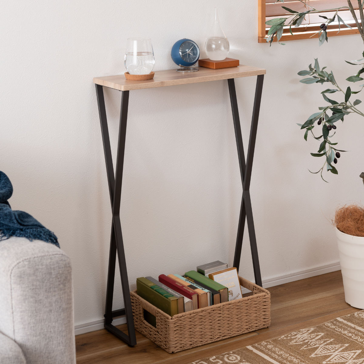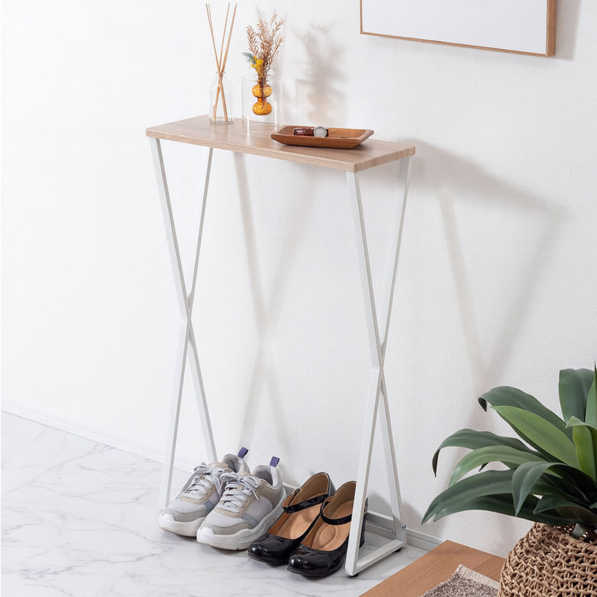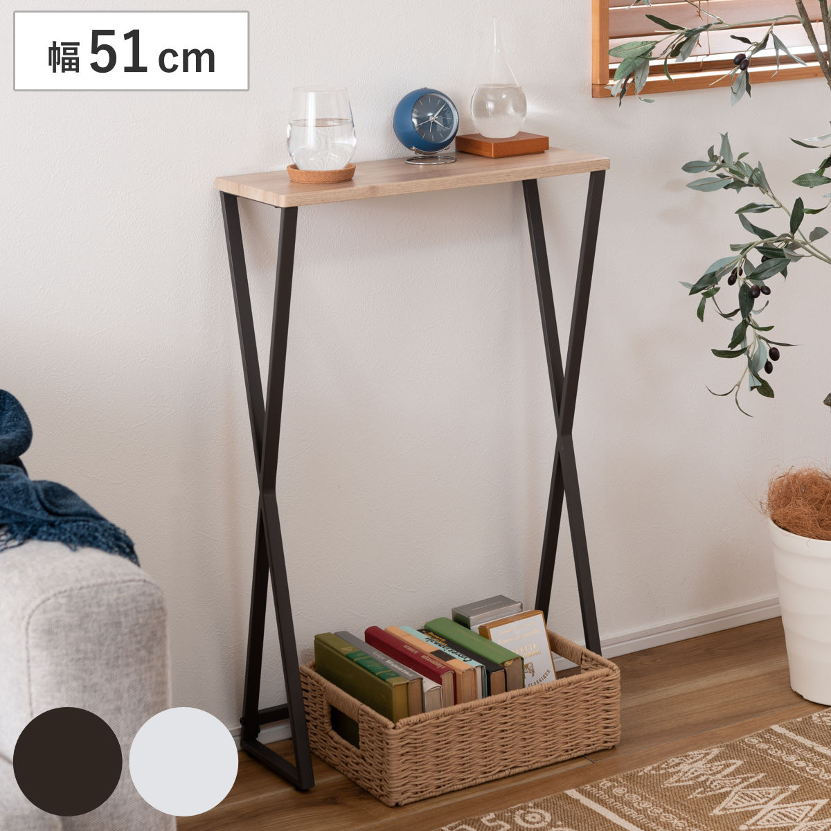 コンソールテーブル 幅51cm 省スペース ( デスク スリム テーブル 奥行19cm 作業台 玄関 木目調 棚 玄関収納 小物置き 飾り棚 コンパクト ラック サイドテーブル ディスプレイ台 スチール脚 ミニテーブル 廊下 リビング ) 【ホワイト】