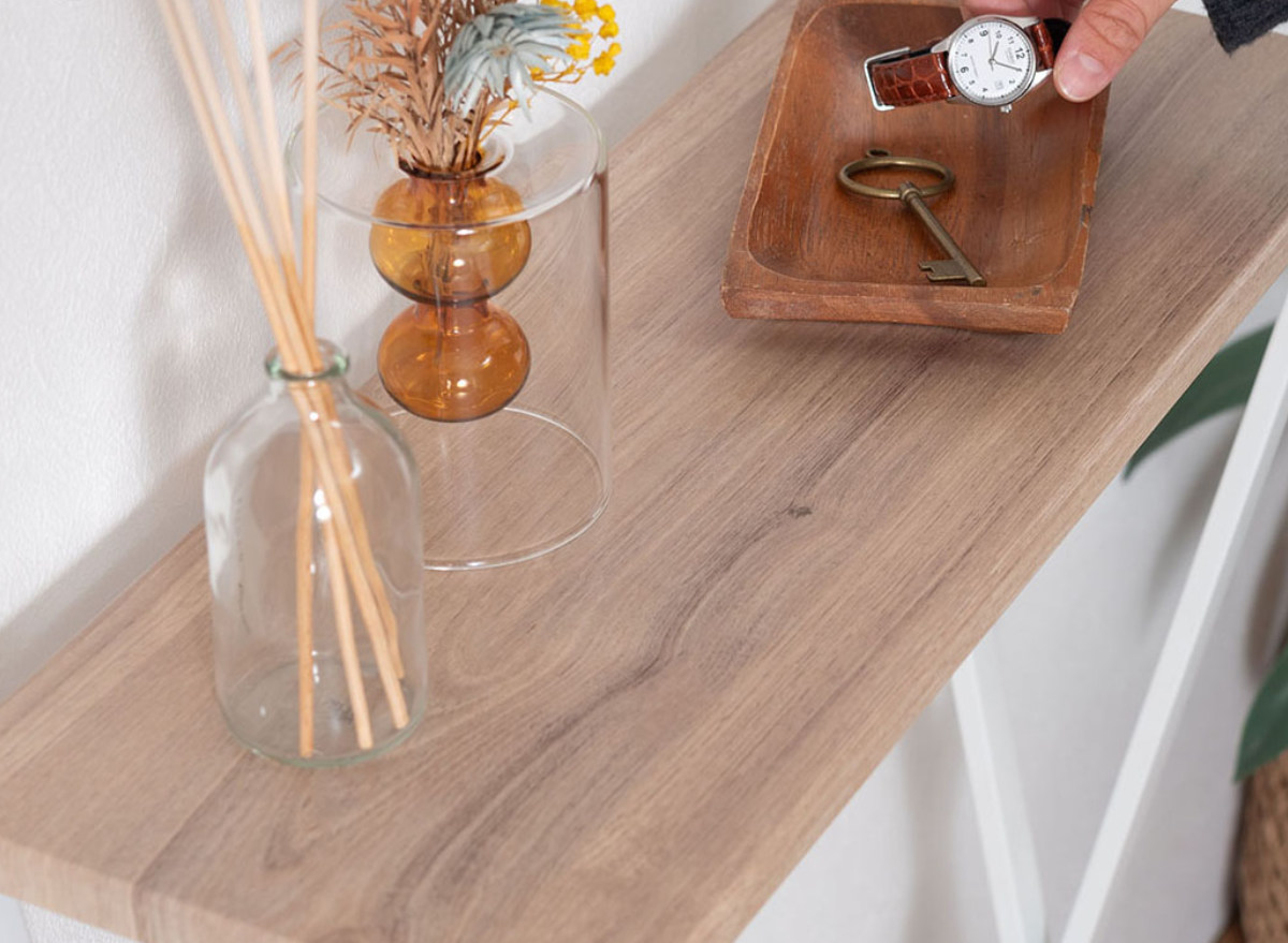奥行19cmのスリムなデザインのコンソールです。スペースの限られたお部屋でも、圧迫感なく置くことができます。玄関や廊下、リビングなど、ちょっとした置き場所が欲しい時に大活躍します。