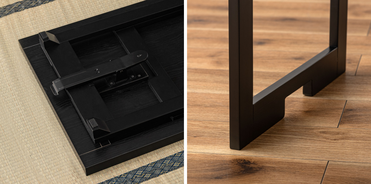 ローテーブル使用時にも床や畳への接地面を広めにとることで、傷つきを軽減できる設計になっています。また、脚裏にはフェルト付きで、フローリングの上での使用も安心です。