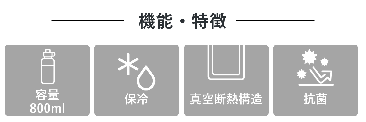 ![]() 500ml オフィスでの気分転換に | ![]() 800ml アウトドアのおともに 【▲このページの商品】 | ![]() 1.2L ホームパーティのドリンク作りに |