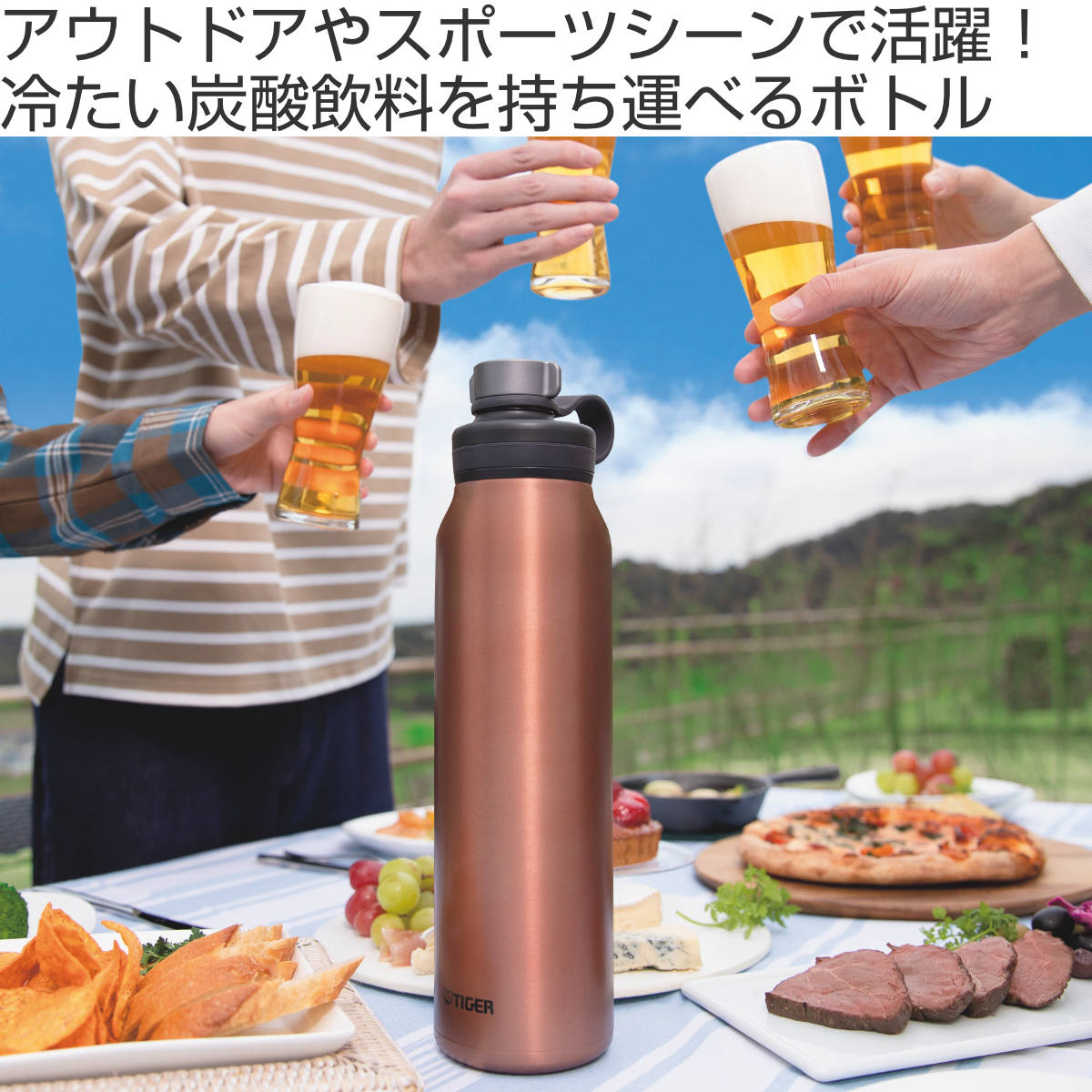 タイガー 水筒 800ml 真空断熱ボトル 炭酸ボトル 保冷専用 MTA-T080 ( TIGER 直飲み 保冷 炭酸OK ステンレスボトル ダイレクトボトル 抗菌 直のみ 炭酸水 グロウラー ボトル 抗菌加工 炭酸 入れられる 真空断熱構造 スポーツ 大人 ) 【カッパー】