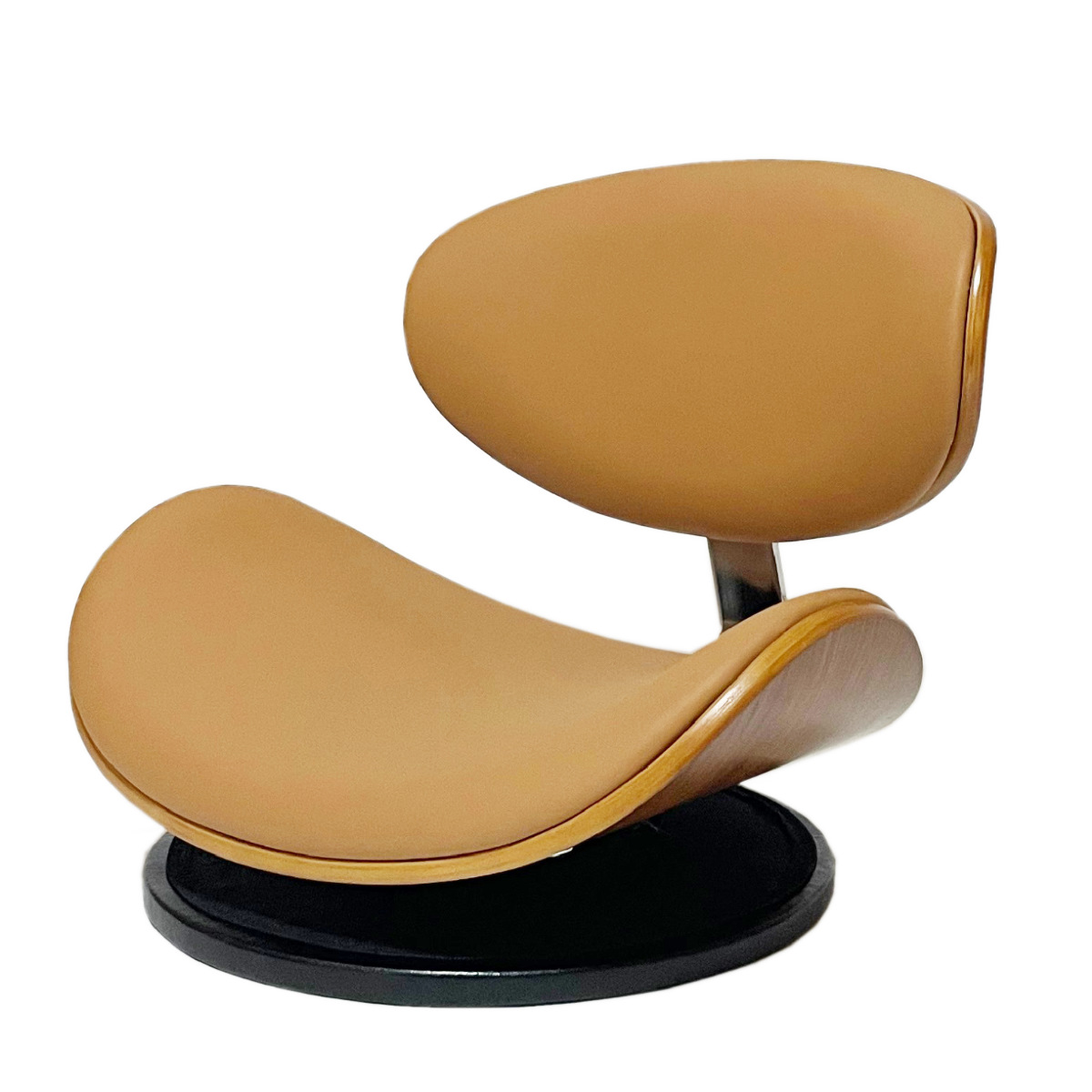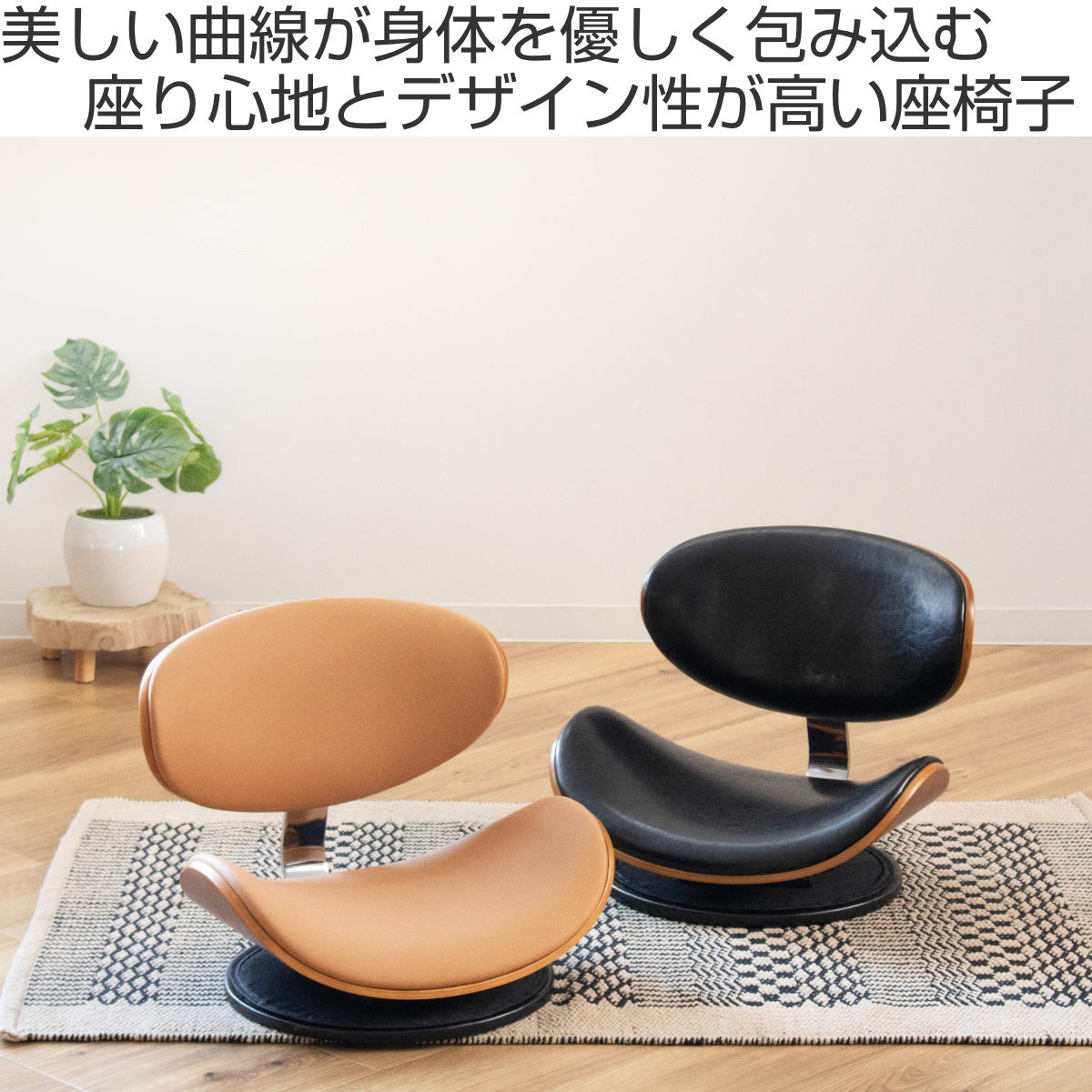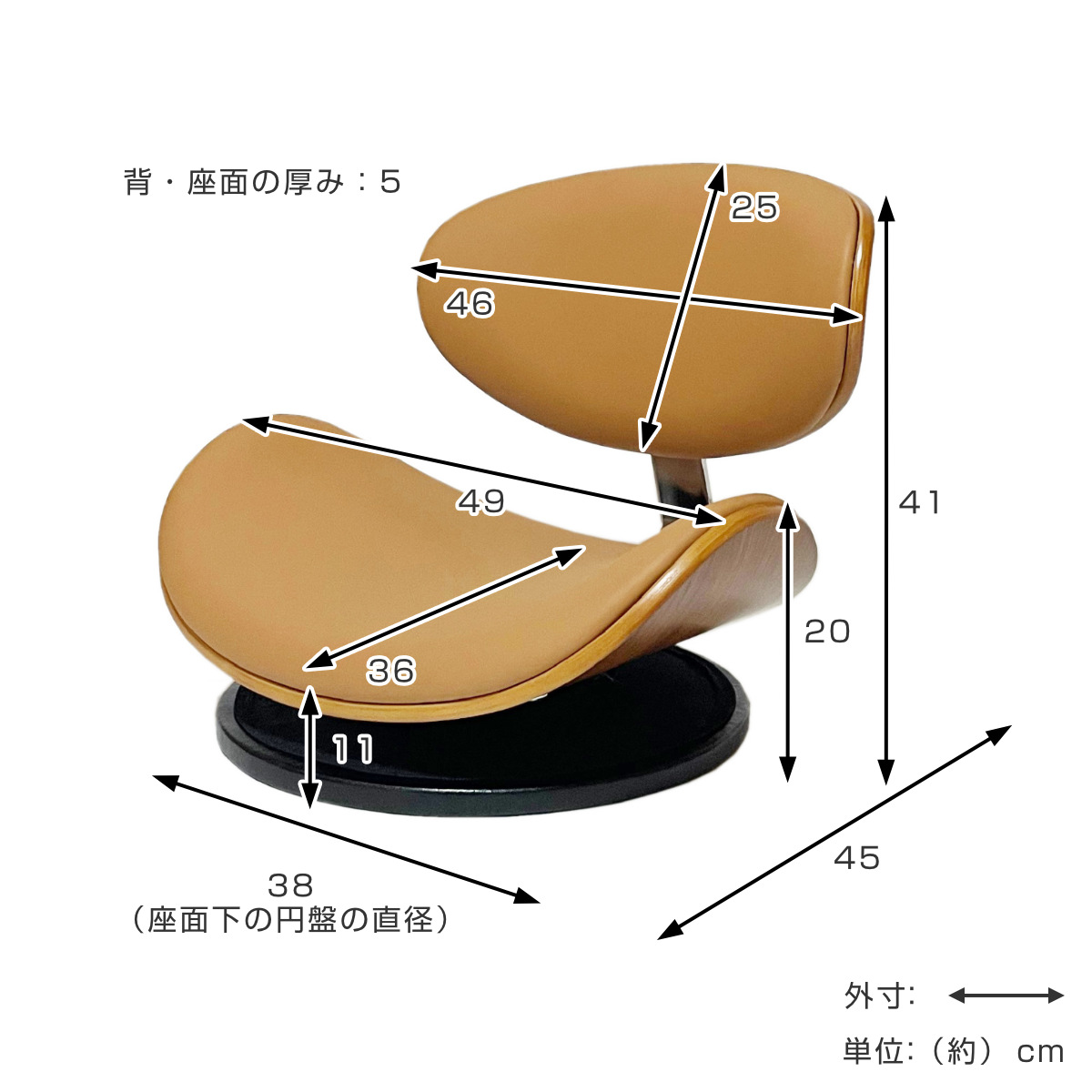 ローチェア 座面高11cm 回転 レザー調 ノースチェア ラウンドチェア ( 座椅子 チェア チェアー イス 椅子 いす 360度回転 1人掛け 座いす 回転椅子 イームズチェア調 立ち座り 楽 ウレタン 座り心地 快適 回転チェア ) 【ライトブラウン】