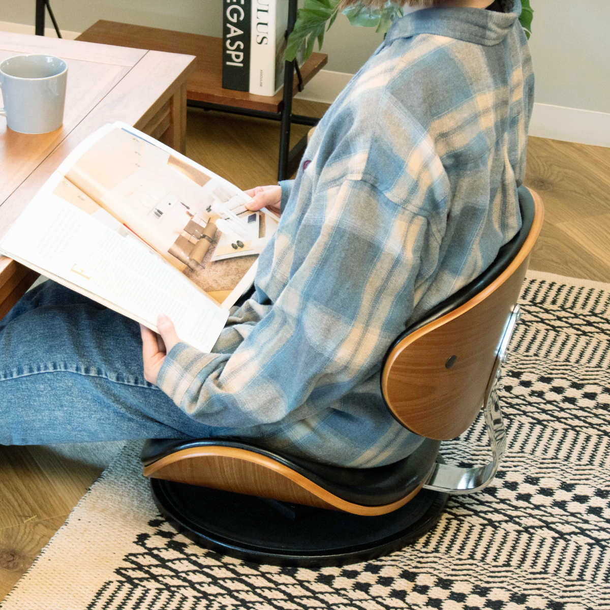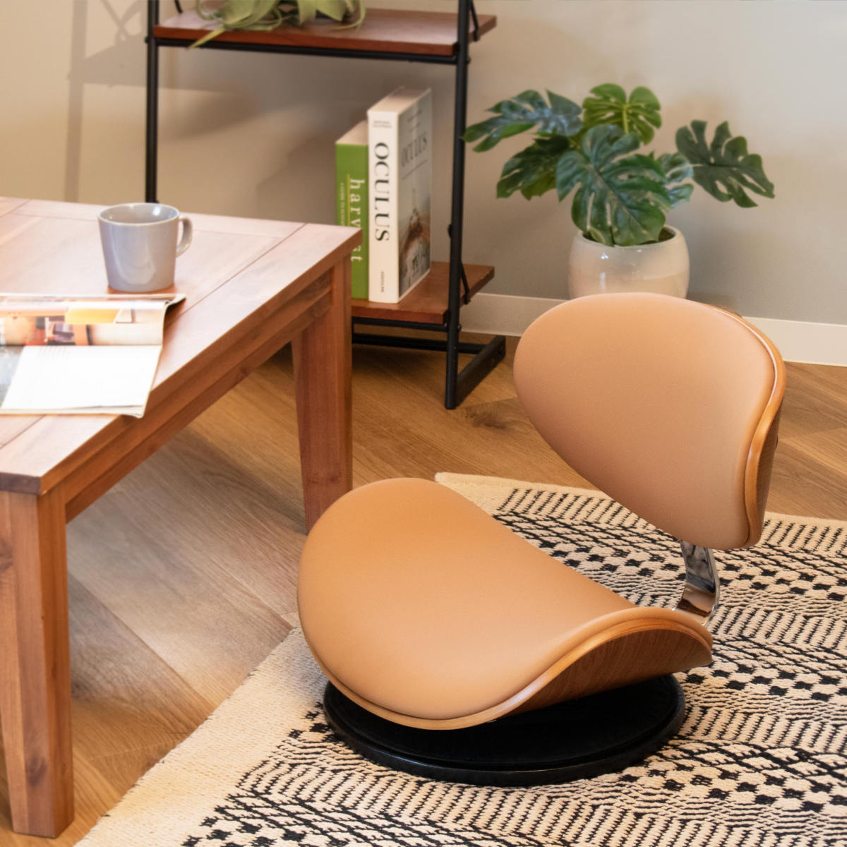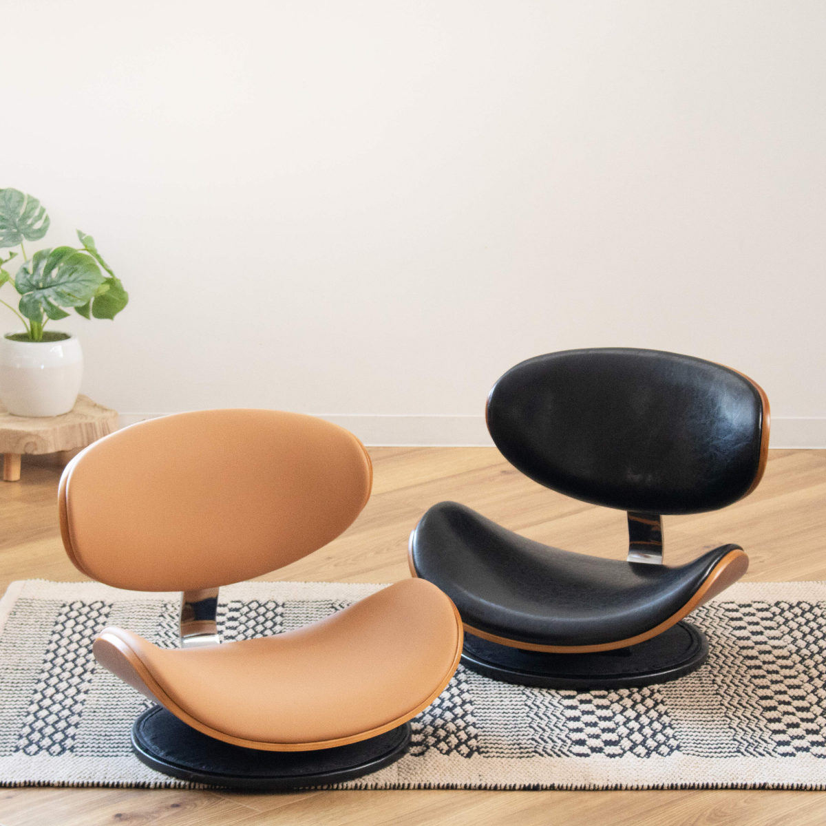 1950年代を中心に生み出されたミッドセンチュリー家具、その中でも人気の高いイームズチェアをイメージして作られています。ローテーブルにも合わせやすい座椅子として、現代のインテリアと組み合わせても違和感なくレイアウトできます。