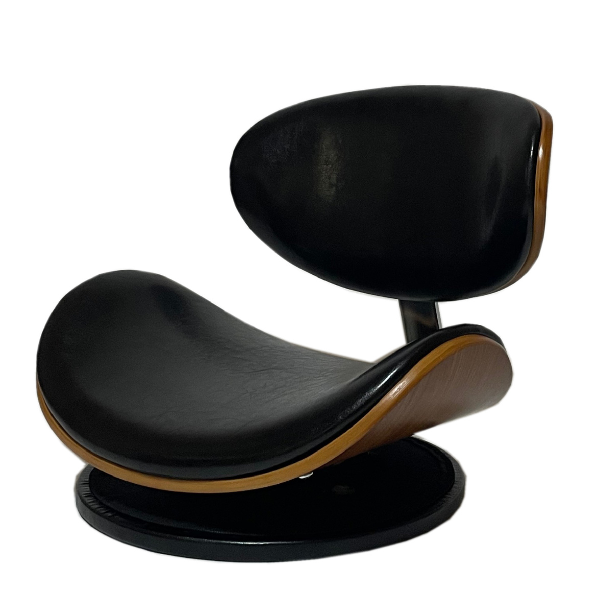 ローチェア 座面高11cm 回転 レザー調 ノースチェア ラウンドチェア ( 座椅子 チェア チェアー イス 椅子 いす 360度回転 1人掛け 座いす 回転椅子 イームズチェア調 立ち座り 楽 ウレタン 座り心地 快適 回転チェア ) 【ブラック】