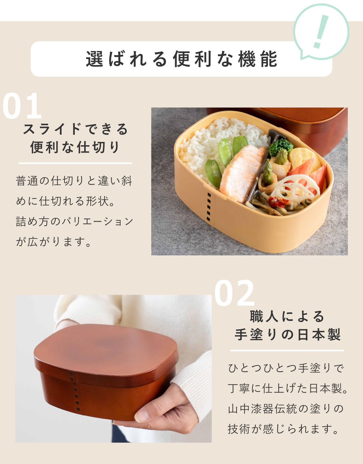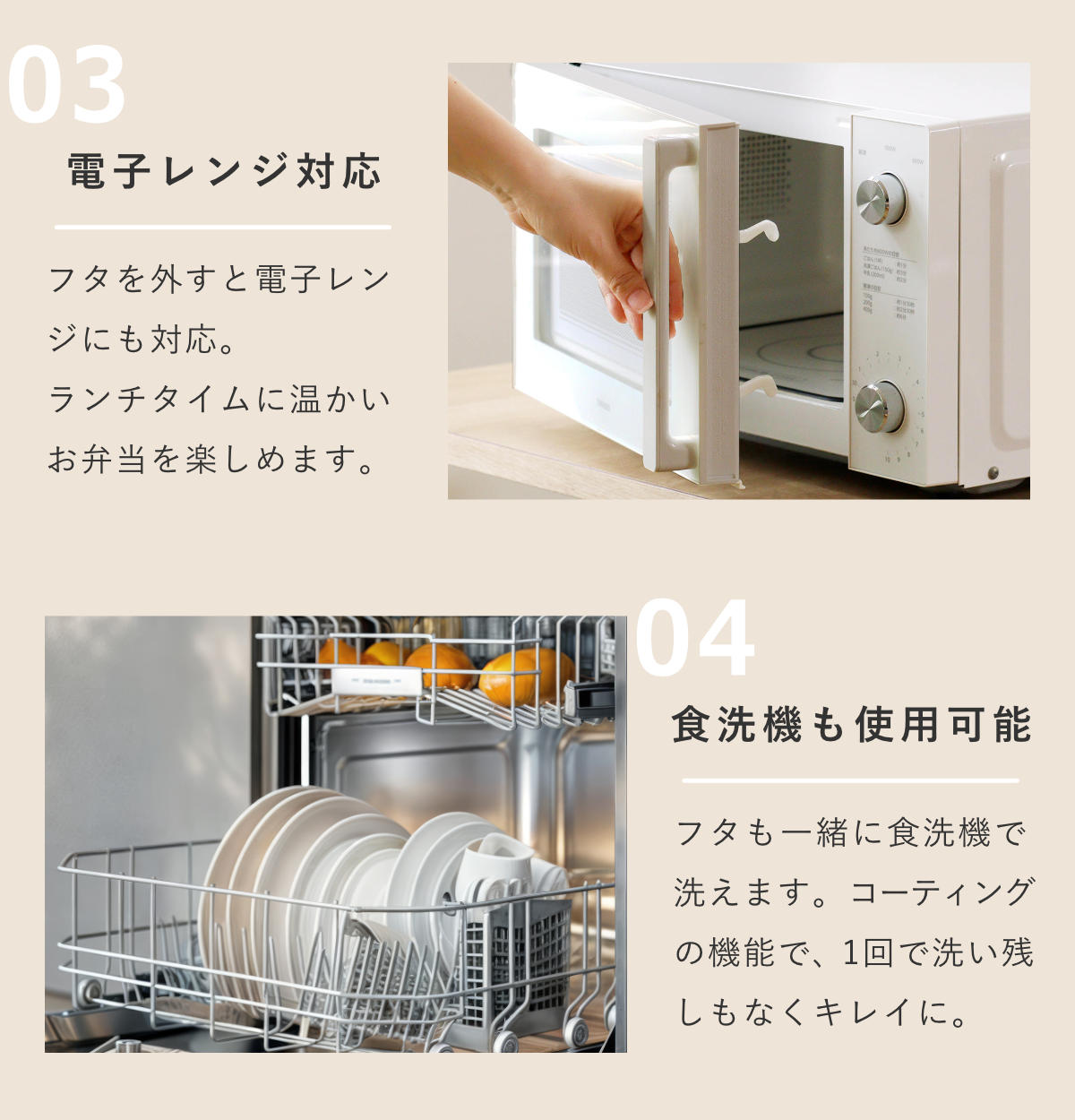 | パーツ別耐熱温度 | 本体、蓋、仕切り:140度 パッキン:230度 |