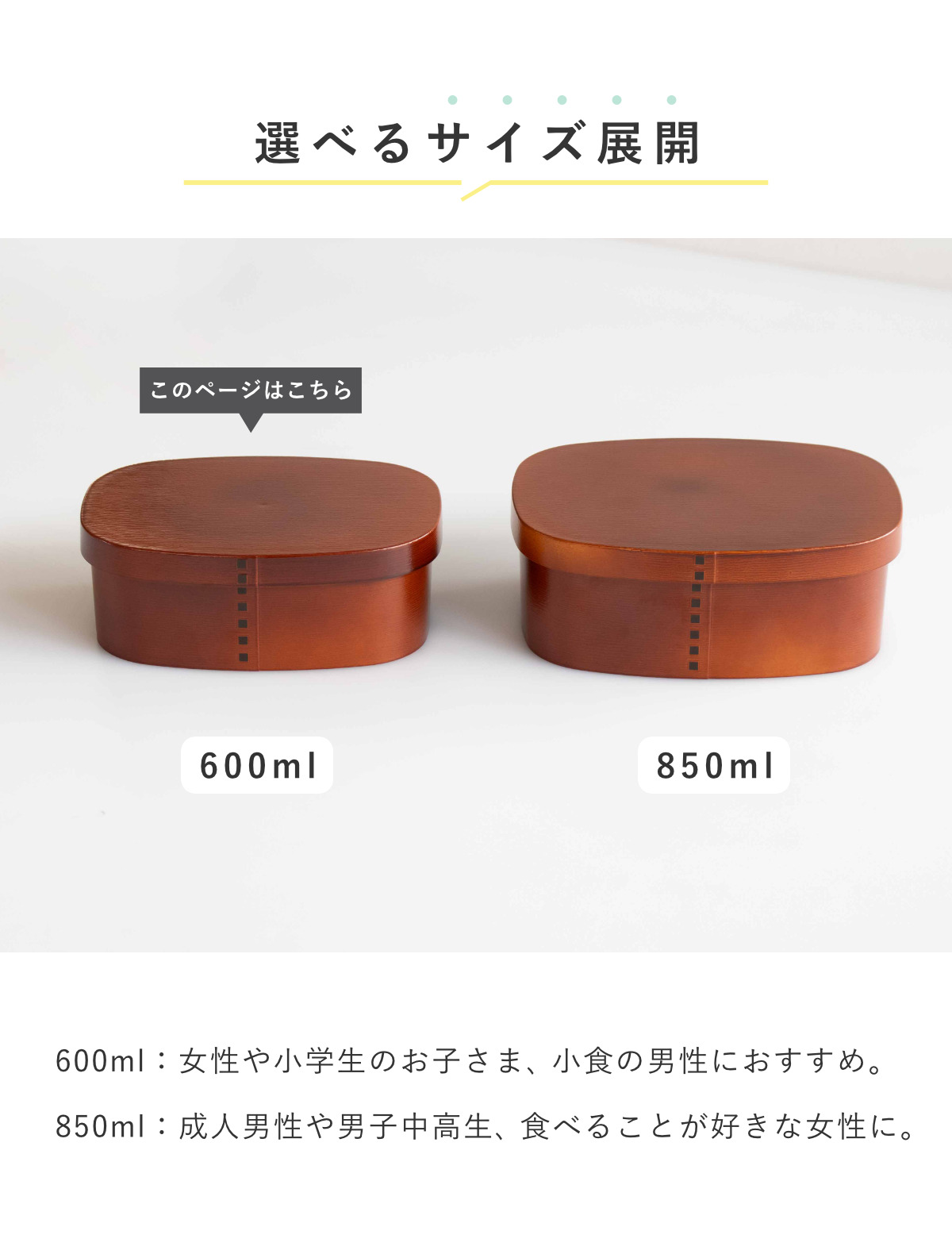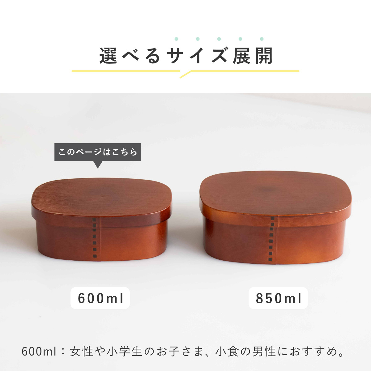 ![]() 600ml 女性や小学生にピッタリなサイズ 【▲このページの商品】 | ![]() 850ml 男性、学生に最適な大盛りサイズ |