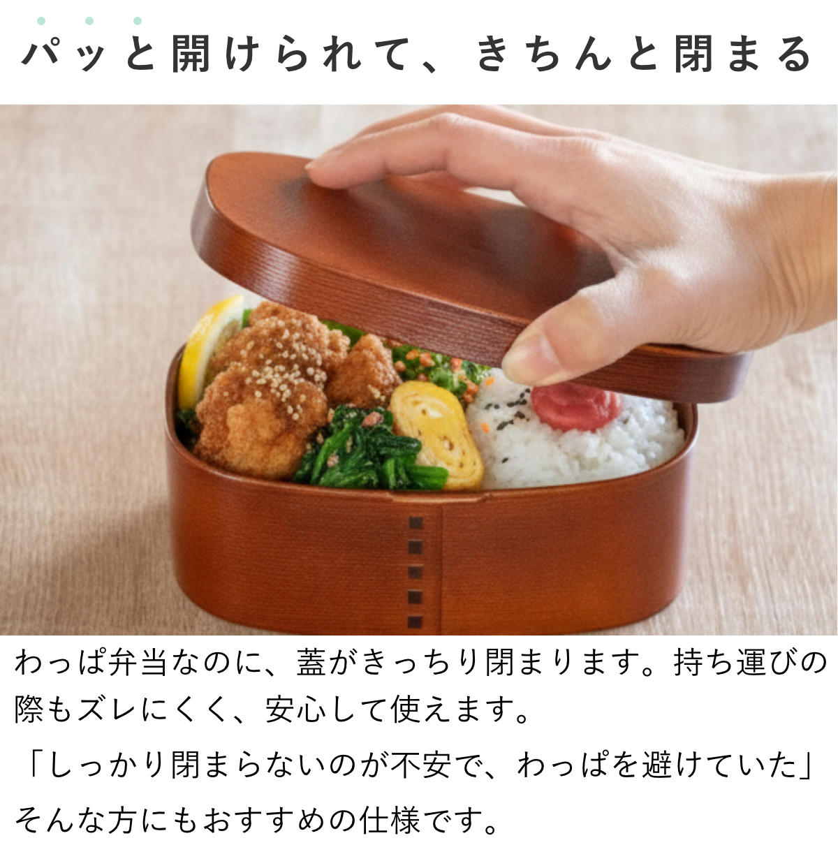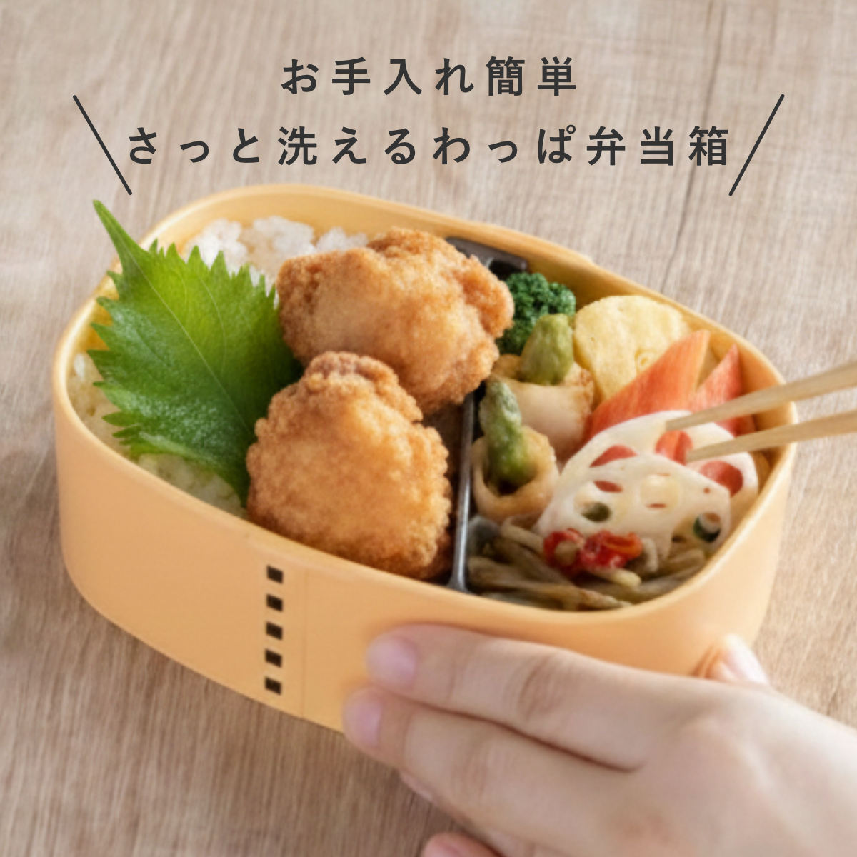 さっと洗えるわっぱ弁当 600ml わっぱ 弁当箱 ( お弁当箱 ランチボックス レンジ対応 食洗機対応 一段 木目調 レンジOK 食洗機OK 弁当 お弁当 仕切り付き パッキン付き 大人 1段 日本製 ) 【ベージュ】