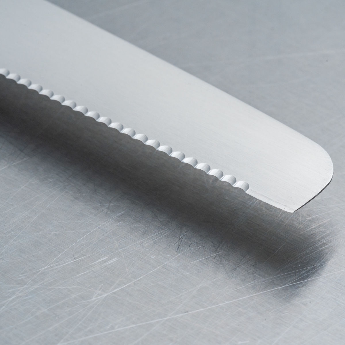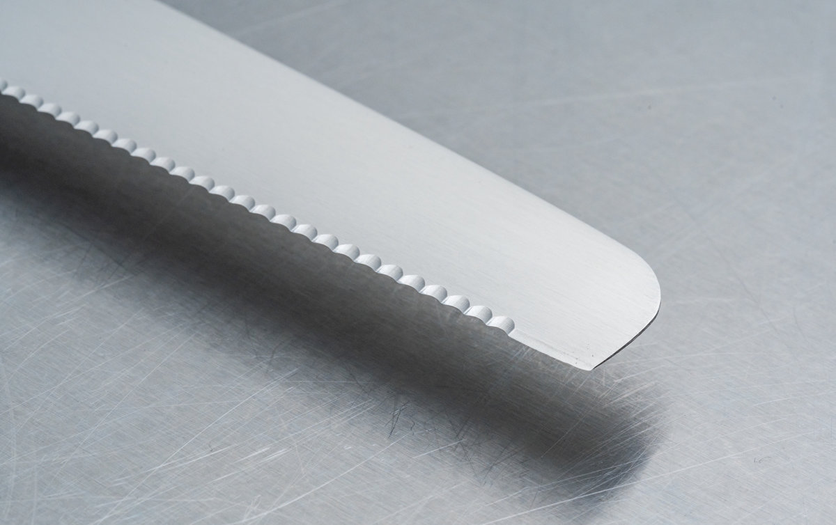 細かく鋭い波刃がパンくずや生地のつぶれを抑え、美しい切り口に仕上げます。高加水パン、クリーム系ケーキ、具材入りサンドもしっかりカットする刃形です。