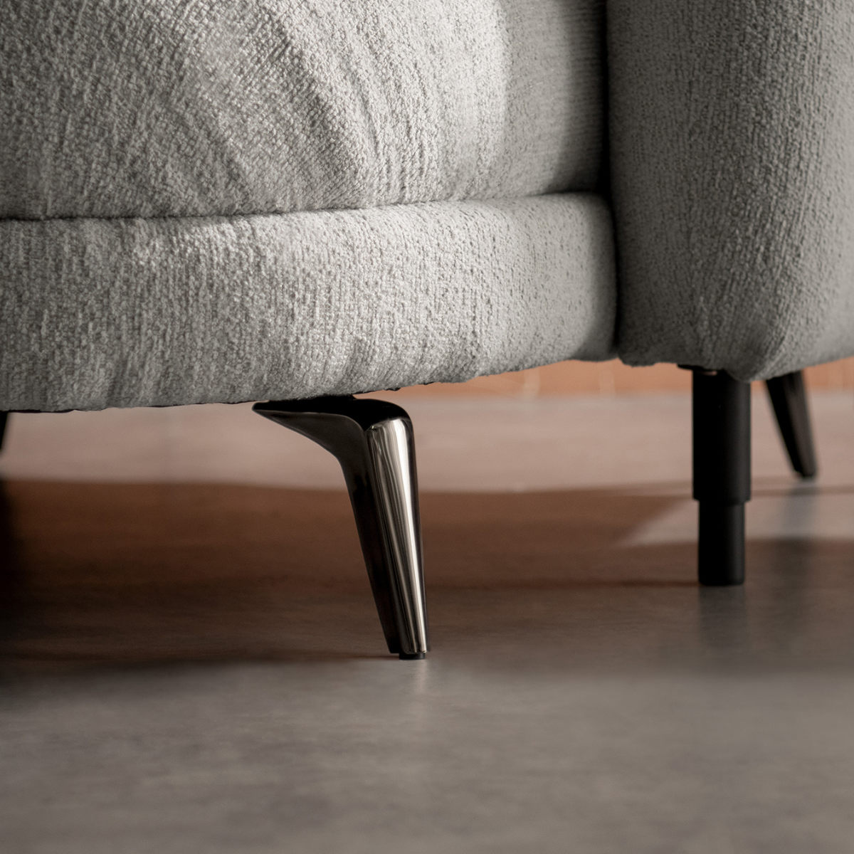 艶やかなクロームメッキにブラックを組み合わせた、洗練されたデザインの脚部。上品な光沢が空間にアクセントを与え、ソファ全体をよりスタイリッシュに引き立てます。