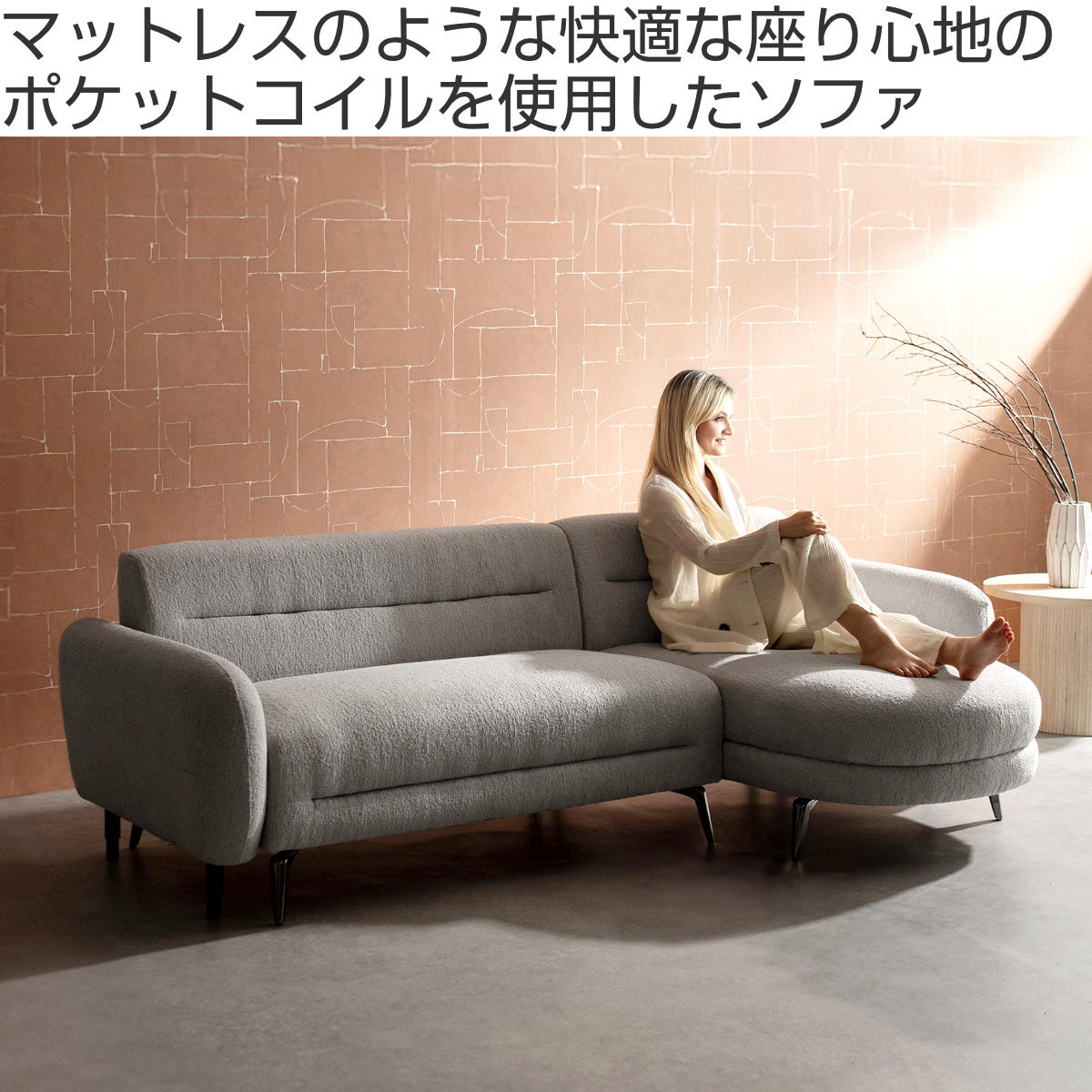 カウチソファ 幅240cm 3人掛け Libers Signature Studio ( 開梱設置 ソファ リビングソファ sofa ブークレ 撥水 ウレタン ポケットコイル 座面 広い 完成品 クッション付き クロームメッキ ダイニングソファ ソファー ファブリック )