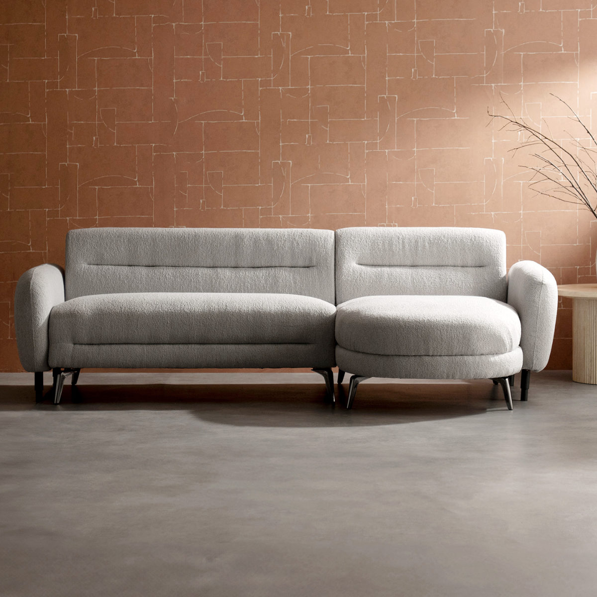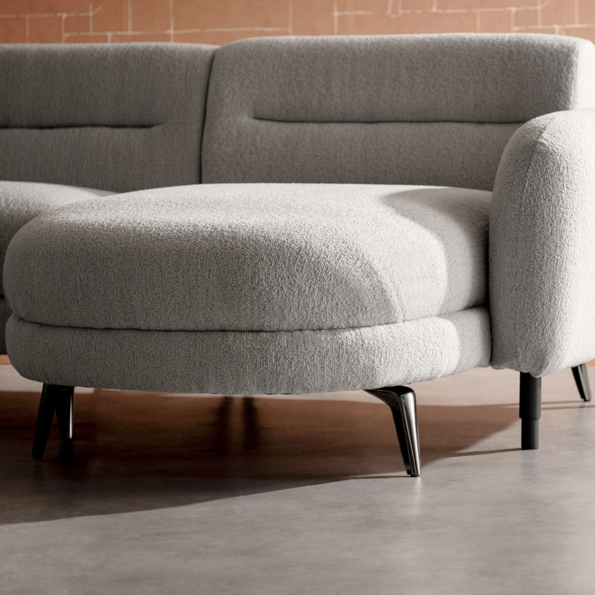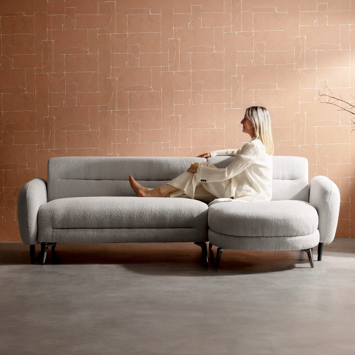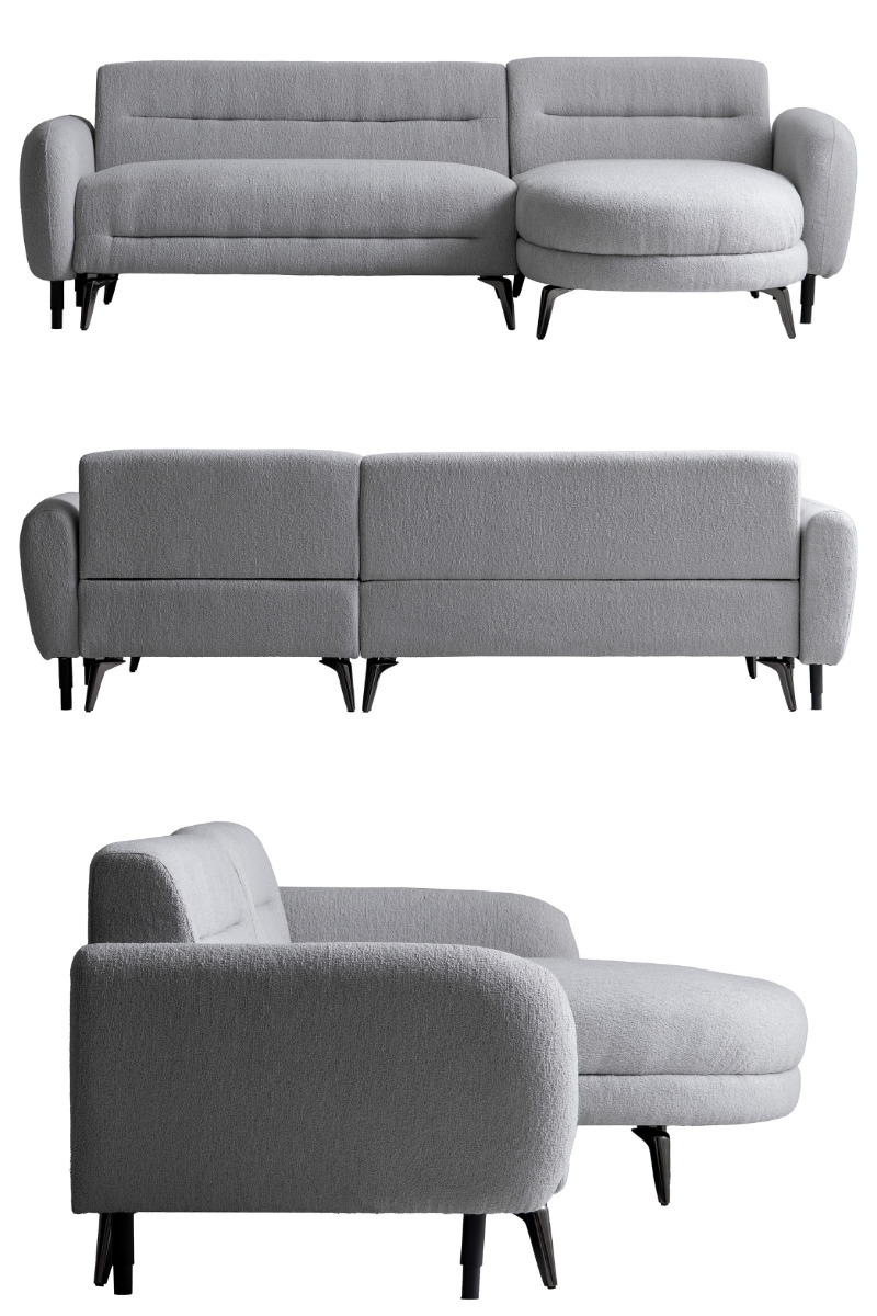 撥水機能付きのブークレ生地で、上品な質感と扱いやすさを両立しました。毎日のくつろぎ時間を、心地よく満たすソファです。