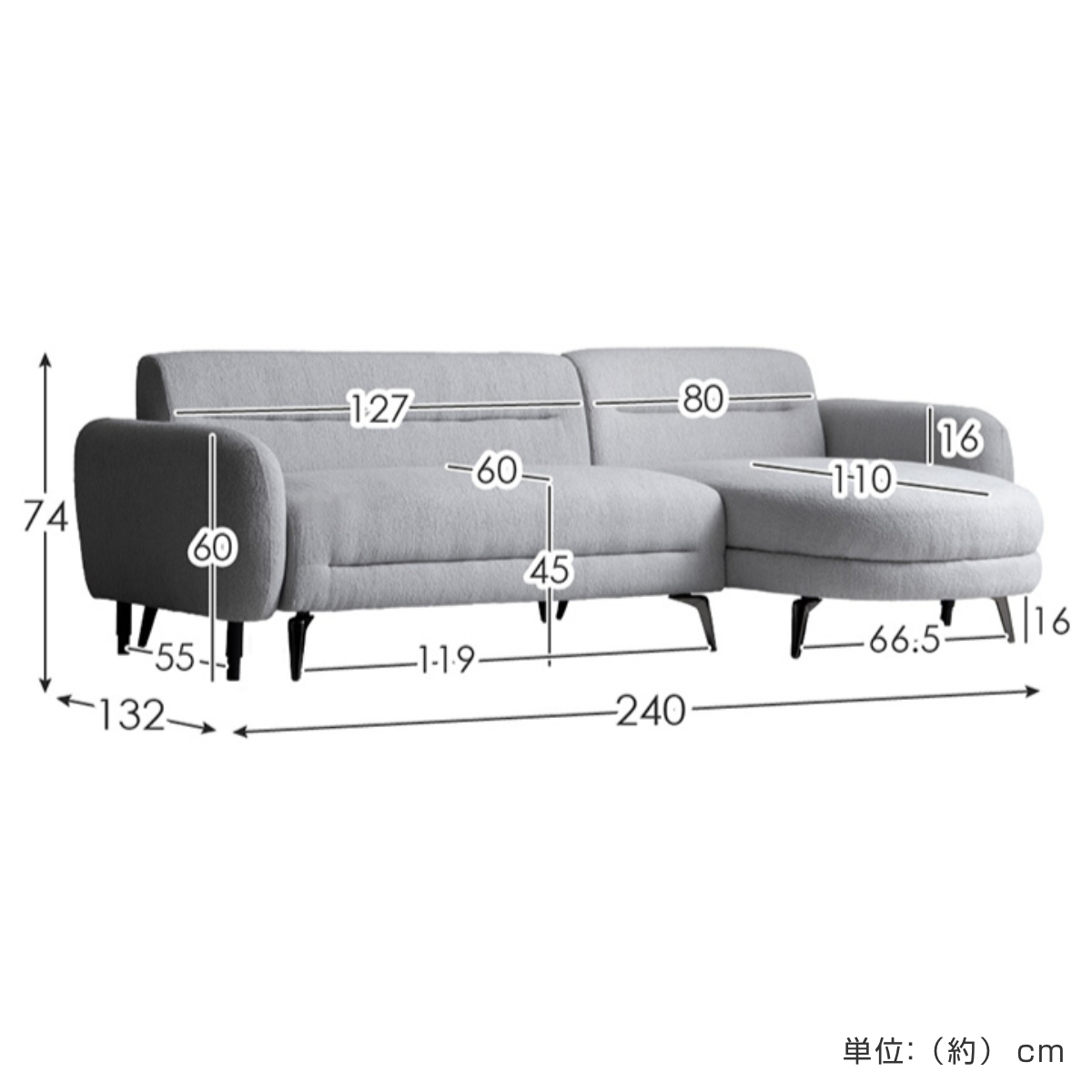 | サイズ | 約 幅240×奥行132×高さ74(cm) 座面高:約 45(cm) |