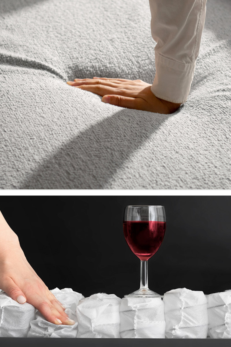 独立したポケットコイルが座った場所だけ沈み込み、身体のラインに優しくフィット。長く使ってもしっかりとした弾力が続き、姿勢が崩れにくいため、長時間でも快適に座っていられます。