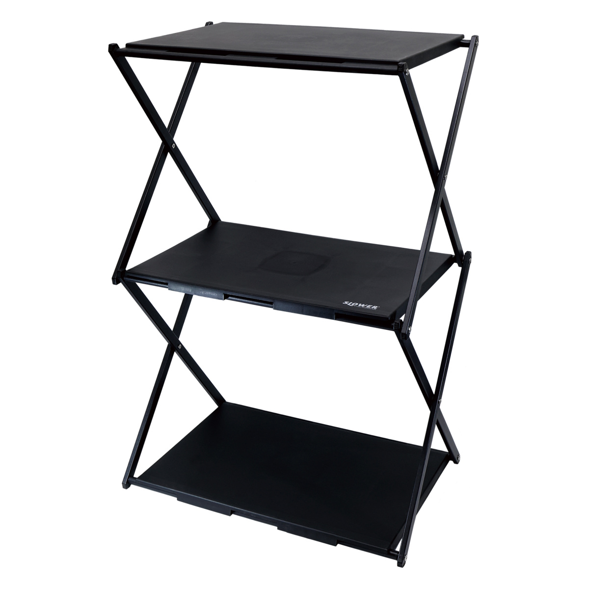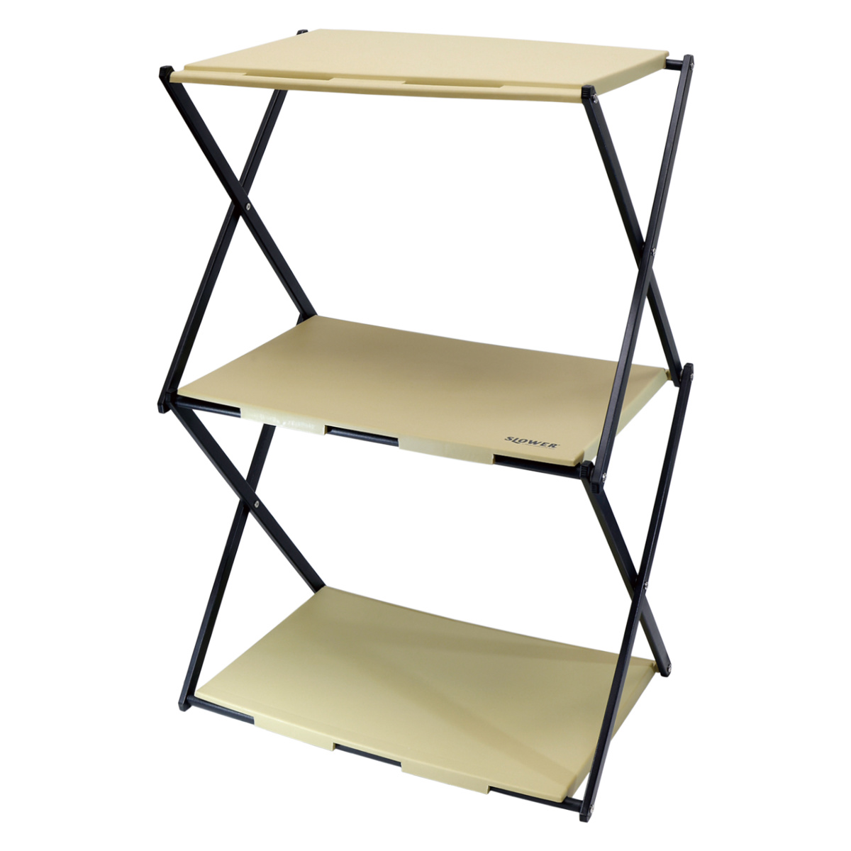 SLOWER ラック 3段 折りたたみ テーブルラック コンロッド ( 収納 収納棚 棚 折り畳み 持ち運び コンパクト テーブル オープンラック 収納ラック サイドテーブル 小物収納 小物 アウトドア シェルフ 変形 スリム インテリア ) 【ブラック】