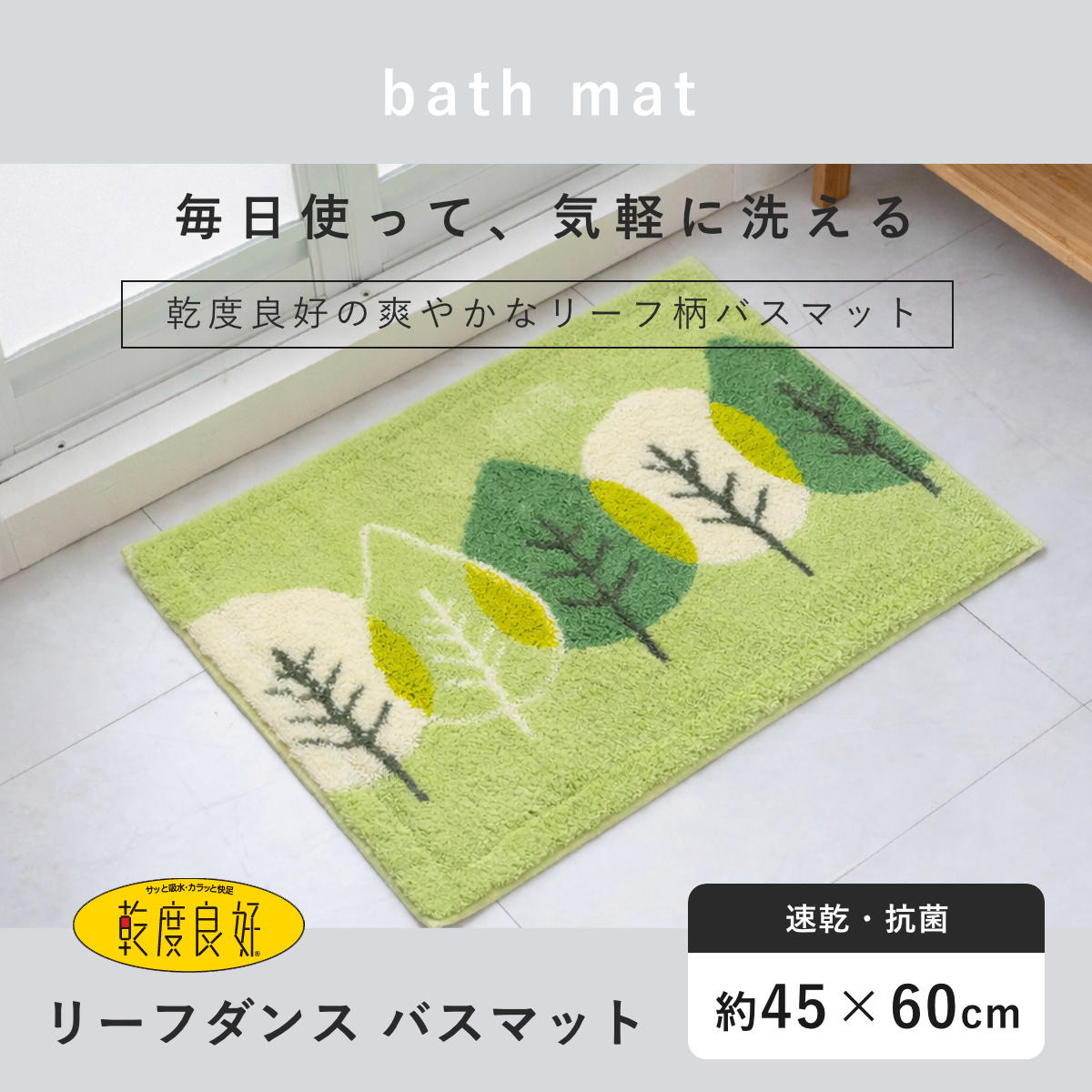バスマット ウィルトン織 乾度良好 リーフダンス 45×60cm 速乾 ( 風呂 マット 速乾性 吸水 吸水性 抗菌 防臭 滑り止め お風呂 浴室 長方形 吸水速乾 バス バス用品 お風呂用品 バスグッズ 洗える 丸洗い 足ふき 60cm )