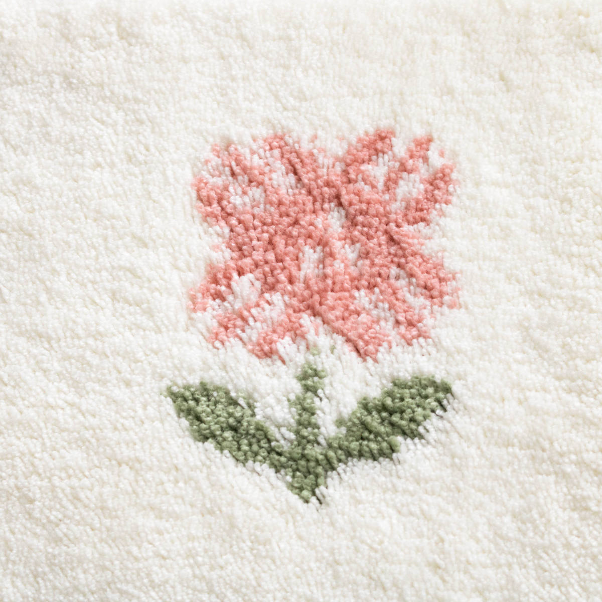 一目ひとめ、しっかり丁寧に織り込まれた、日本製の上質なウィルトン織りのマットです。ウィルトン織りは耐久性と復元力に優れており、繰り返し洗ってもへたれにくいのが特徴です。マットの細部の縫製までこだわり、毛羽立ちが少なく美しい仕上がりです。