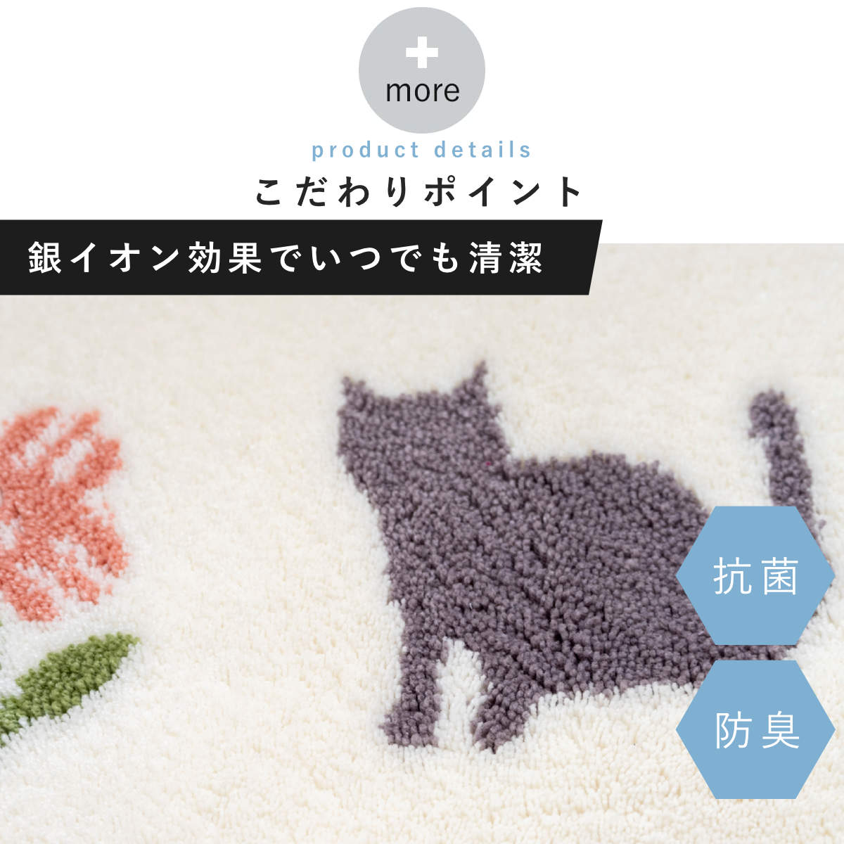 洗っても効果が続く抗菌防臭加工付きで、マット上の菌の増殖を抑制するので、いつまでも衛生的にお使いいただけます。