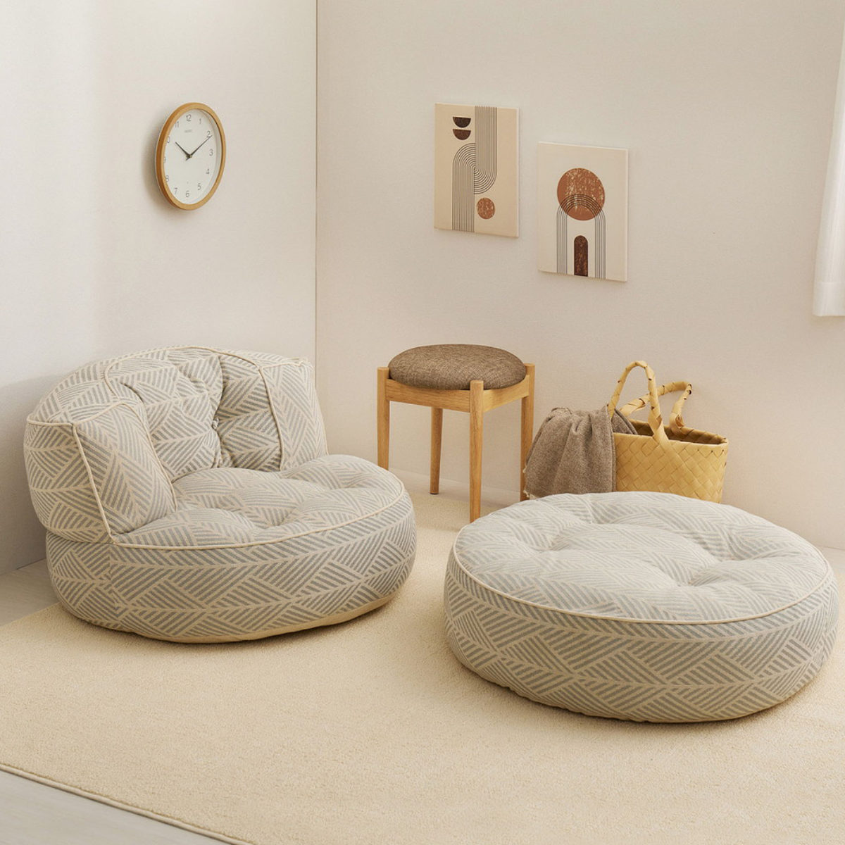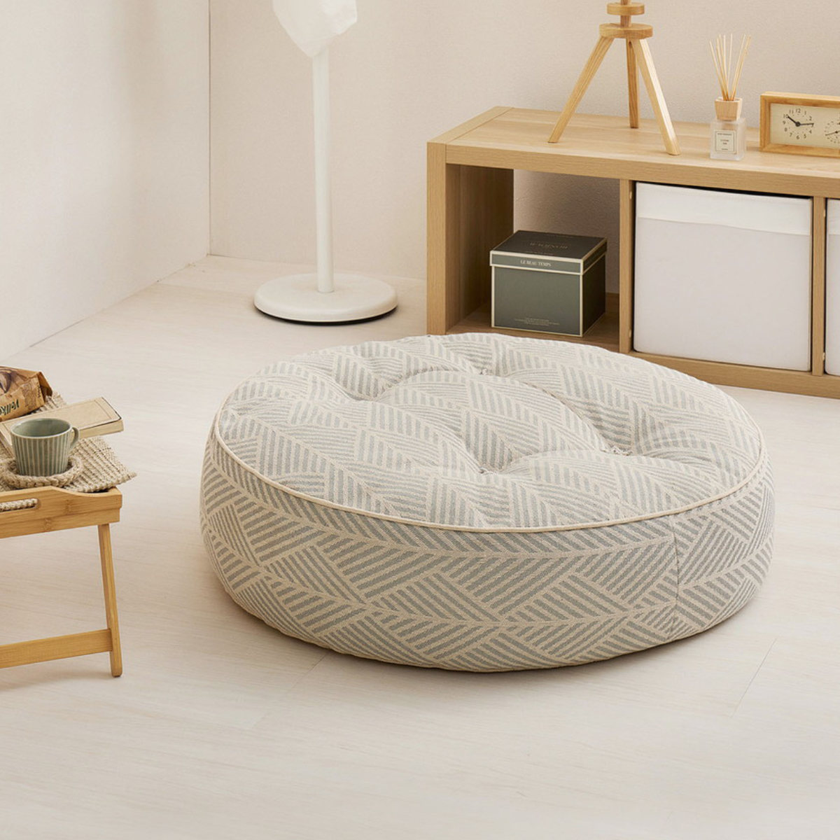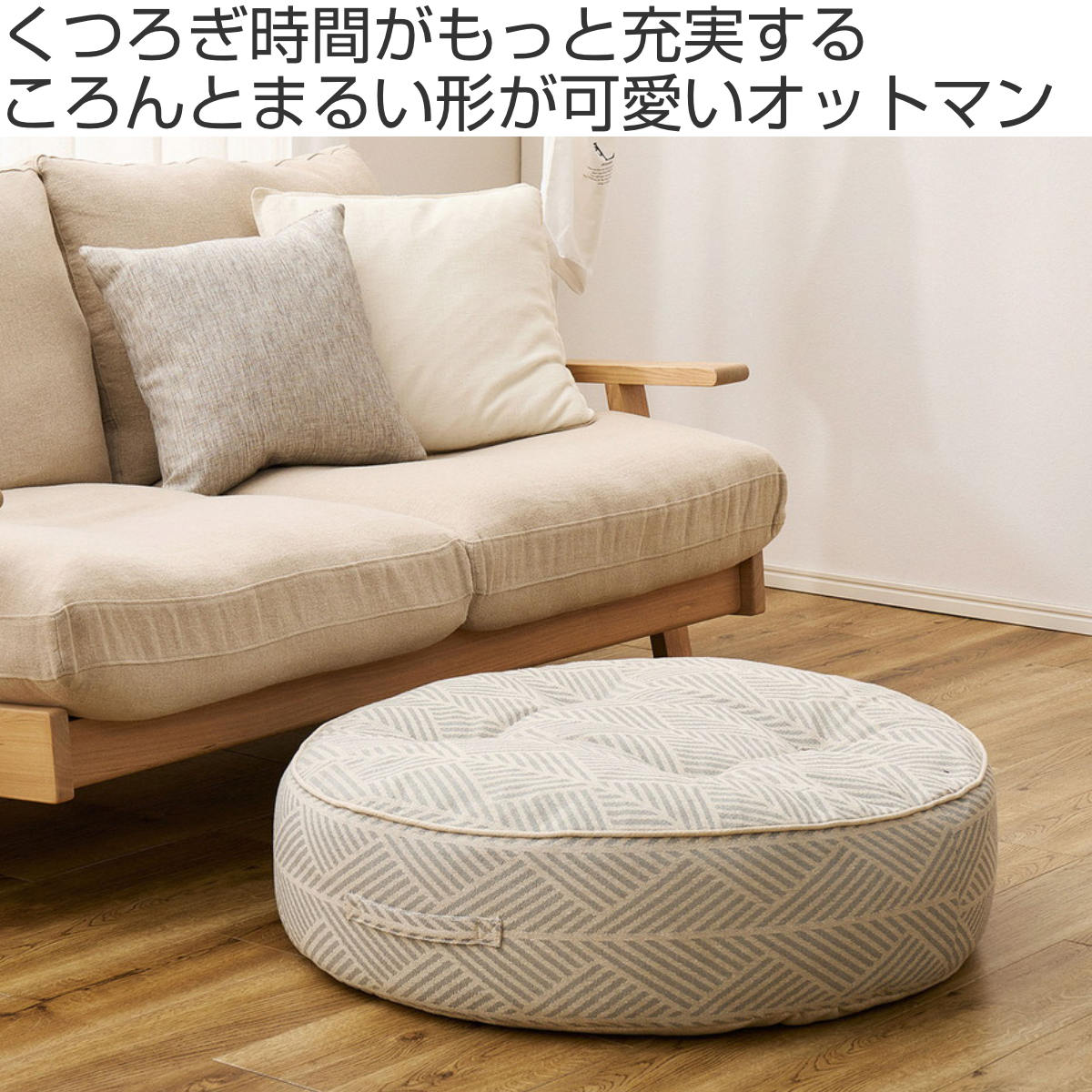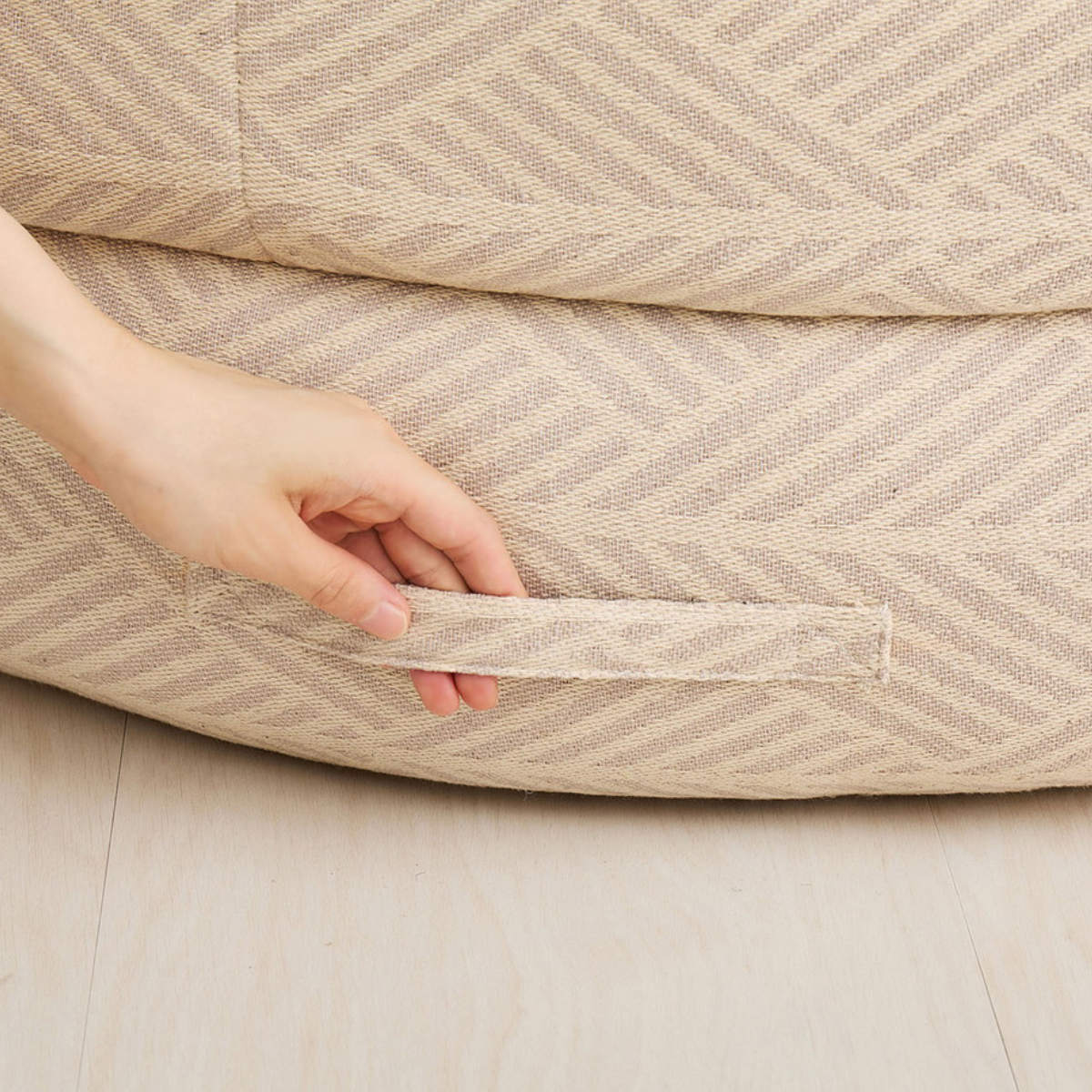 オットマン 円形 retoa フロアソファ ( ソファ フレームレス ソファー 座面 広い 丸 ファブリック コットン 背もたれなし フットレスト フロアクッション sofa ヘリンボーン柄 リビング ロータイプ 取っ手付き フロアソファー ) 【グレー】