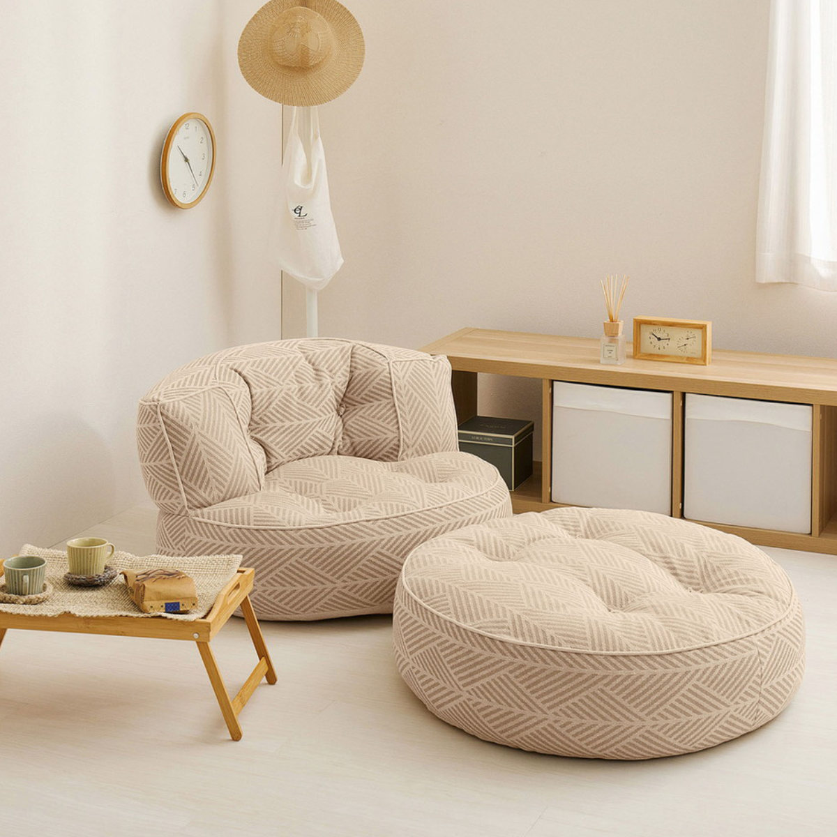 シリーズの円形1人掛けソファ(別売)と組み合わせることで、足を伸ばしてゆったりとくつろげる空間が完成します。姿勢を変えながら過ごせるため、読書や映画鑑賞などにぴったり。いつものリラックスタイムがより充実します。