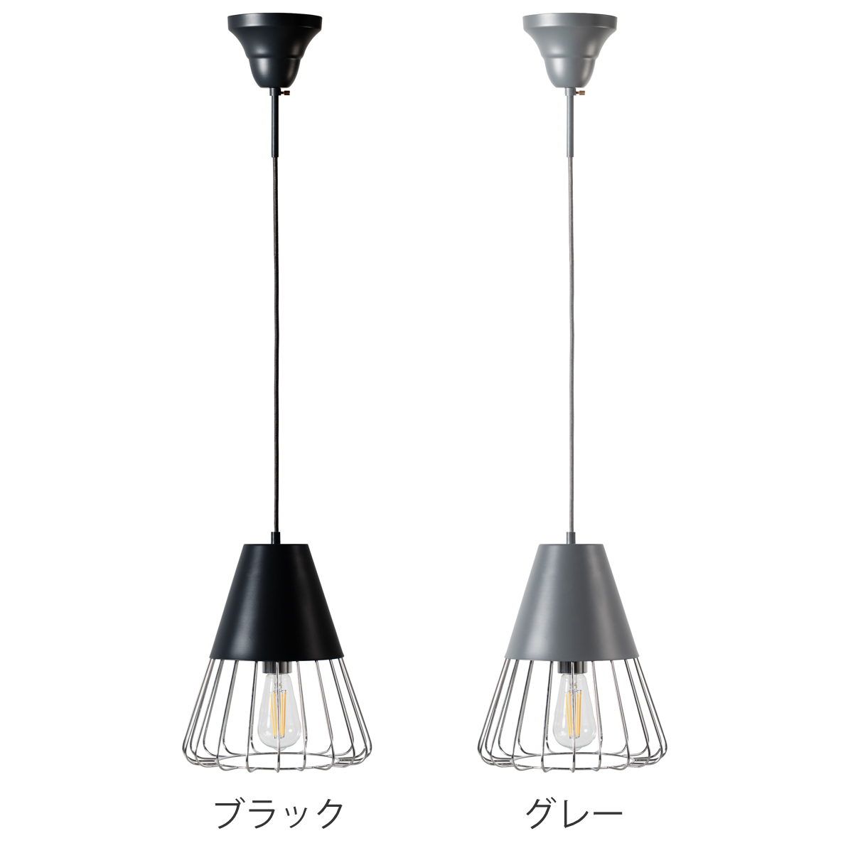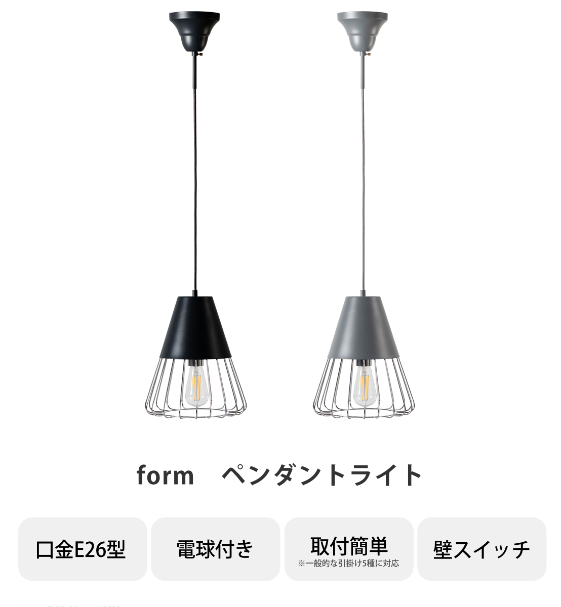form ペンダントライト 1灯 LED対応 電球付き スチール ワイヤーフレーム ( ダイニング 照明 天井 洋室 吊り下げ ライト 照明器具 引っ掛けシーリング LED 1灯式 リビング 居間 寝室 おしゃれ ヴィンテージ風 食卓用 カフェ ) 【グレー】