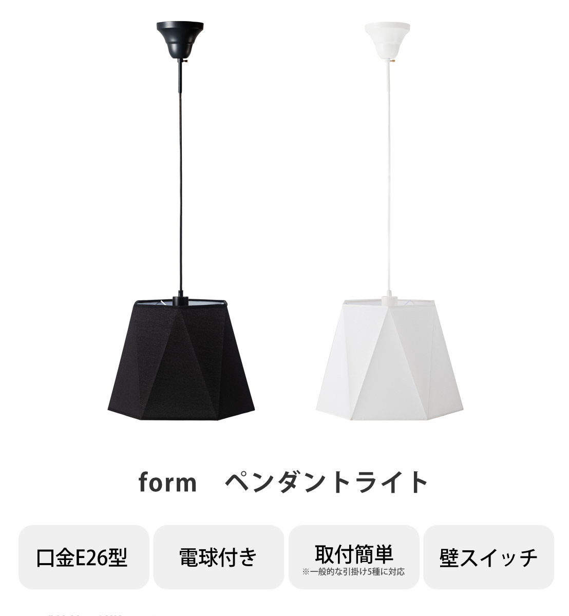 form ペンダントライト 1灯 LED対応 電球付き ( ダイニング 照明 天井 洋室 吊り下げ ライト 照明器具 引っ掛けシーリング LED 1灯式 リビング 居間 寝室 おしゃれ シンプル モノトーン 布シェード 上品 食卓用 店舗 カフェ ) 【ブラック】