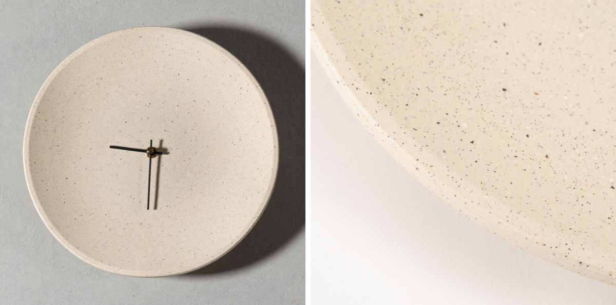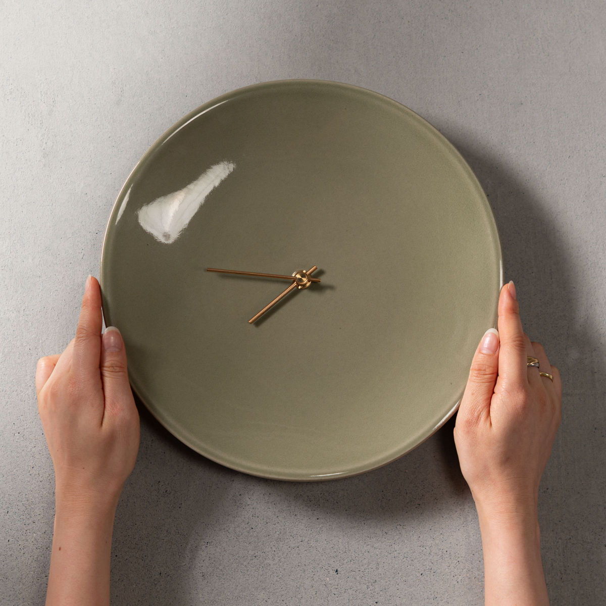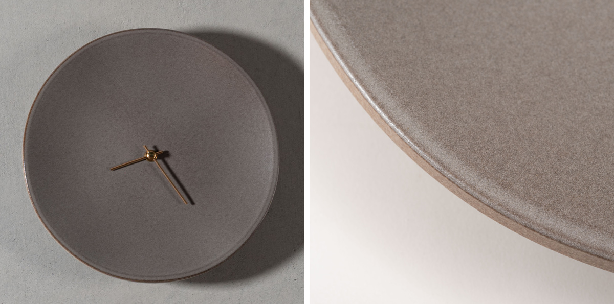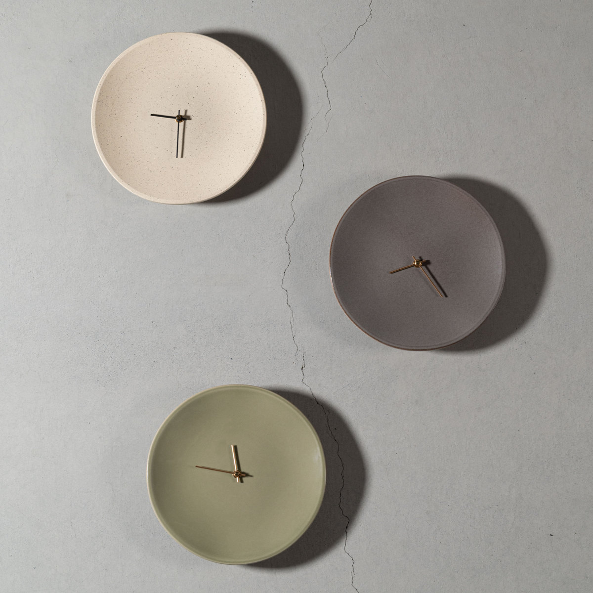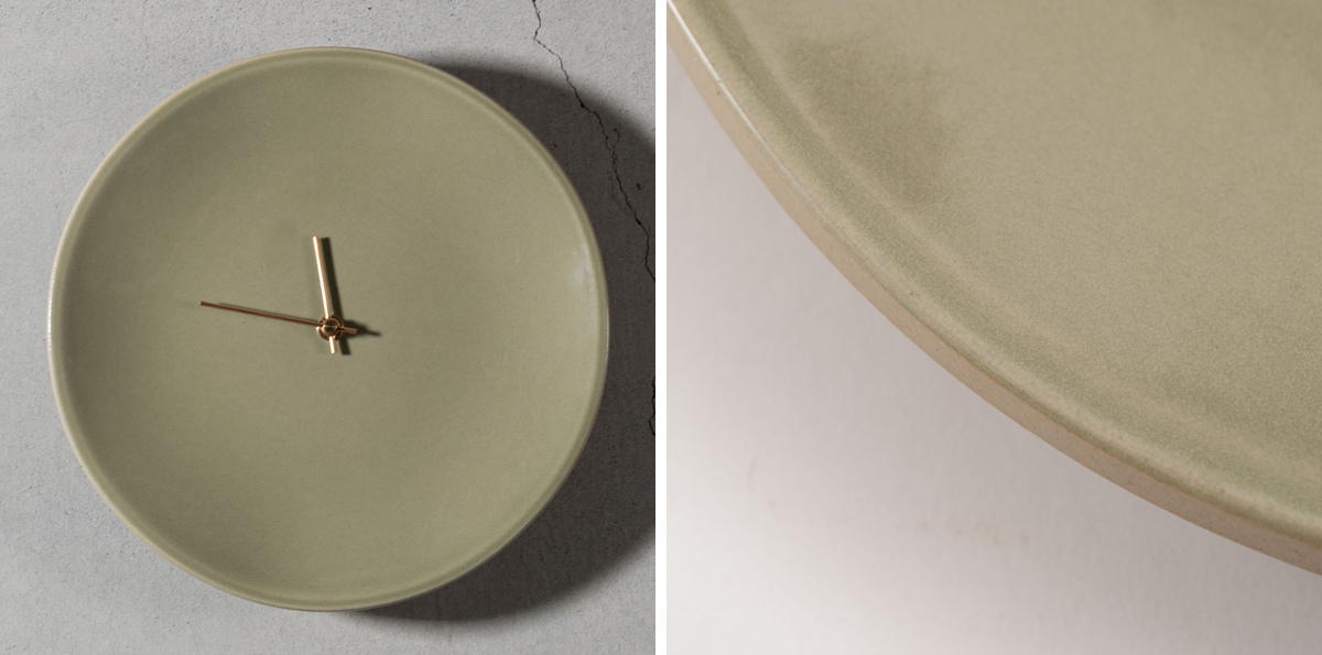 陶磁器やタイルで有名な岐阜県多治見市にて、ひとつひとつ職人の手により丁寧に作り上げられたこだわりの壁掛け時計です。 陶磁器の質感が感じられるお皿の様なフォルムと、 シンプルな細身の針のコントラストが美しい一品です。