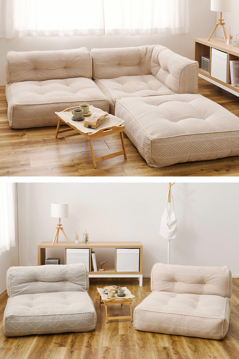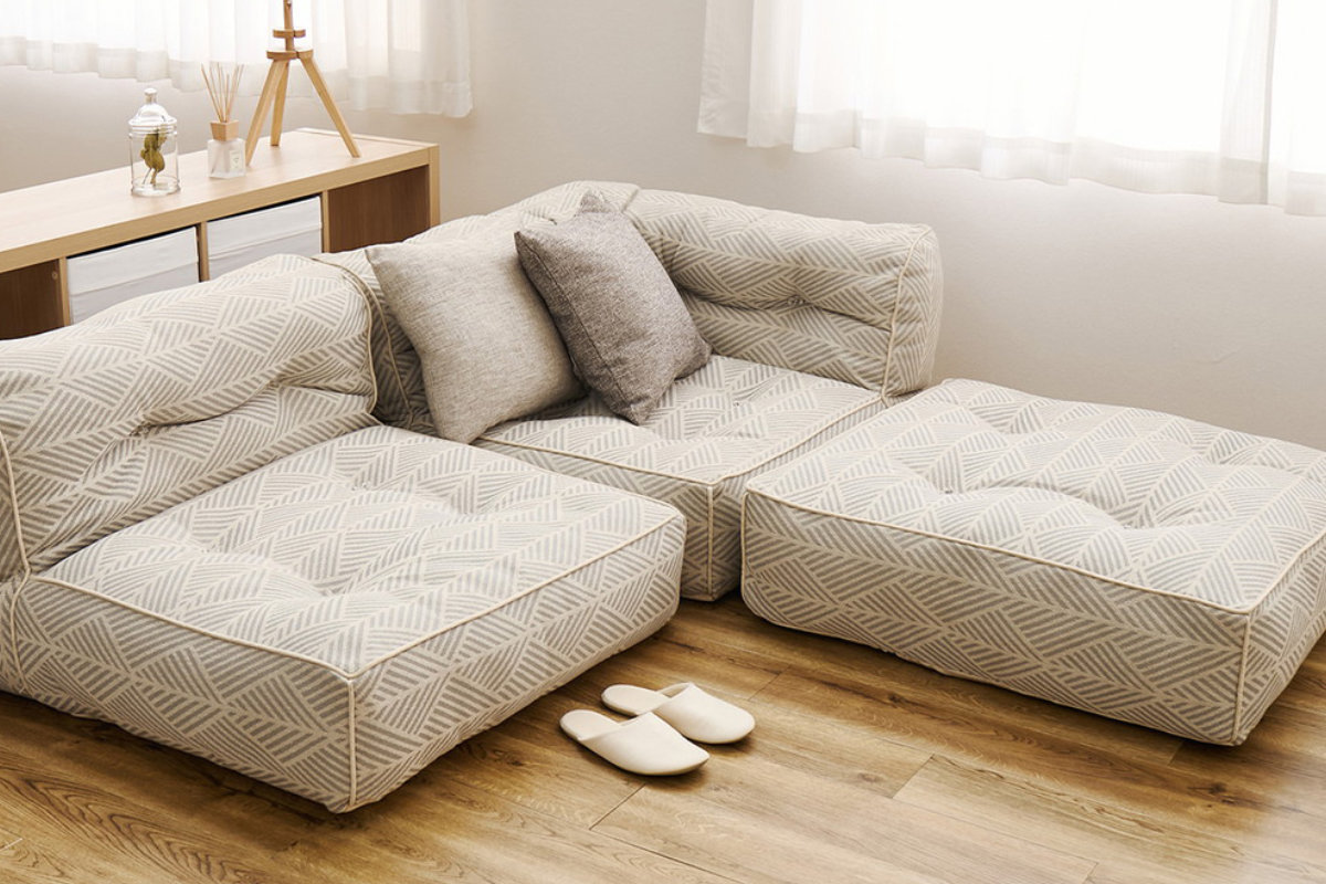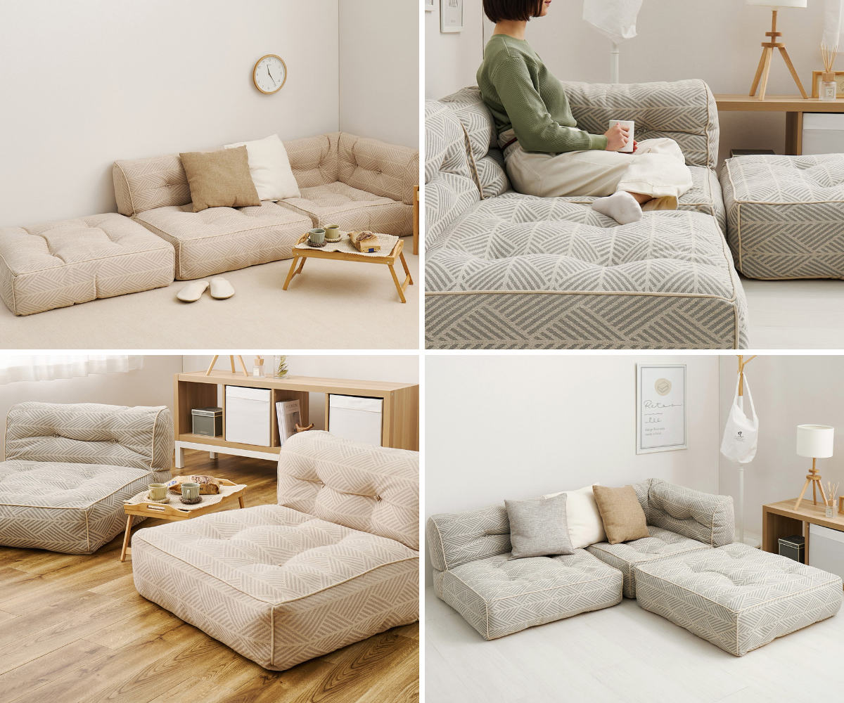 シリーズ商品を組み合わせればレイアウトも自由自在。一人掛けからロングソファ、カウチソファなど好きな組み合わせでローソファを作ることができます。ライフスタイルに合わせてゆったりとくつろげる癒しの空間を演出します。