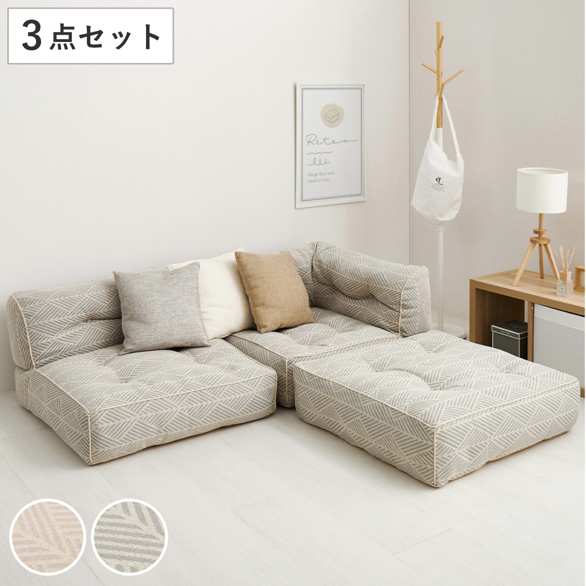 ローソファ 幅80cm 1人掛け retoa つながるフロアソファ ( ソファ フロアソファ ソファー 座面 広い 肘なし 連結 レイアウト 自由 ファブリック sofa ヘリンボーン柄 収納ポケット付き リビング ロータイプ ) 【グレー】