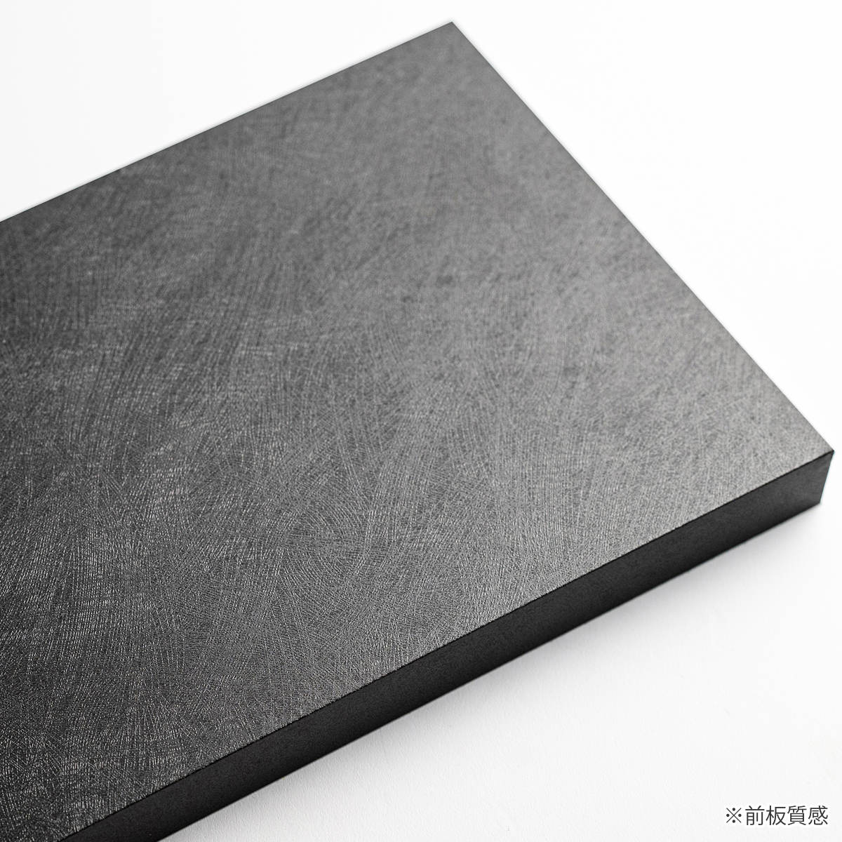 前板にはスクラッチ(ひっかき)加工が施してあり、細やかな円弧を描いたような表情を作り上げています。光の当たり方や、見る角度によって色合いや表情が変化します。和紙のような質感で肌触りもよく、キズにも強いです。