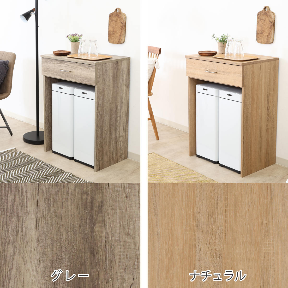 | 注意事項 | ※ゴミ箱は付属しません ※木目の出方はそれぞれ異なります ※商品ページ内には別の商品を含む画像を使用しています |