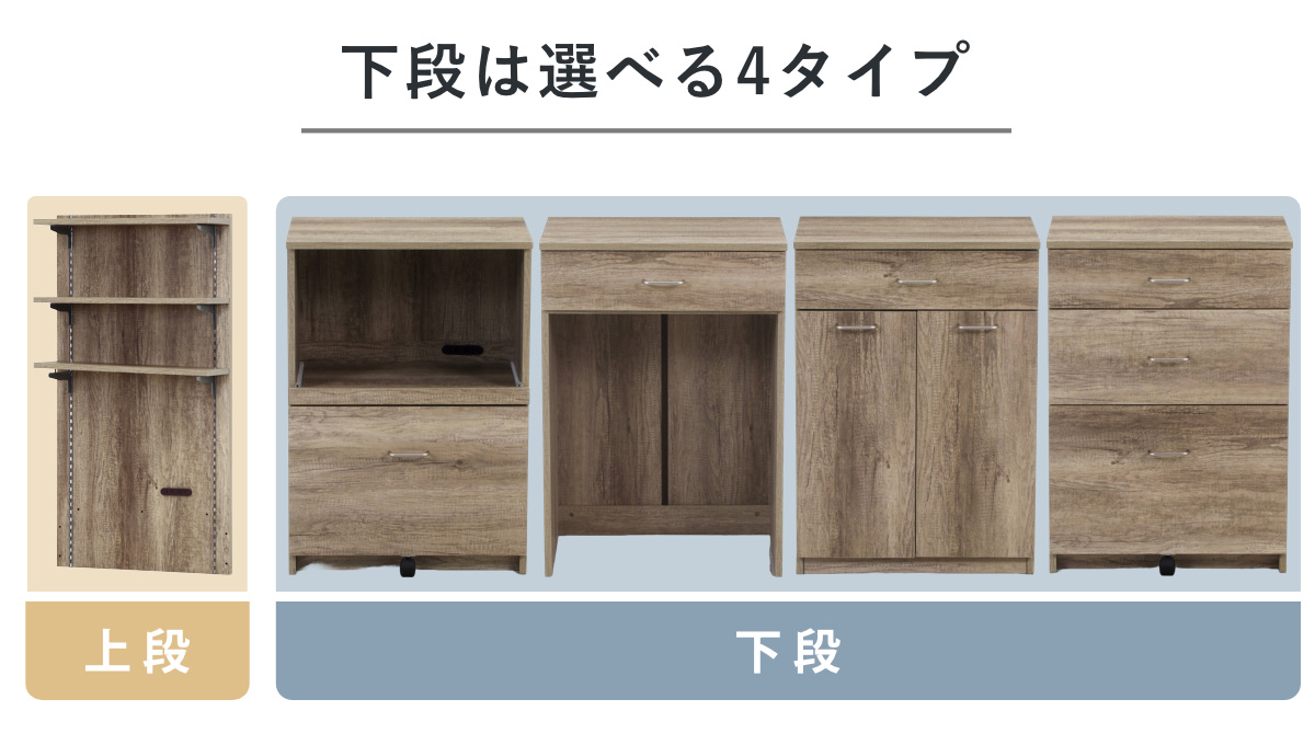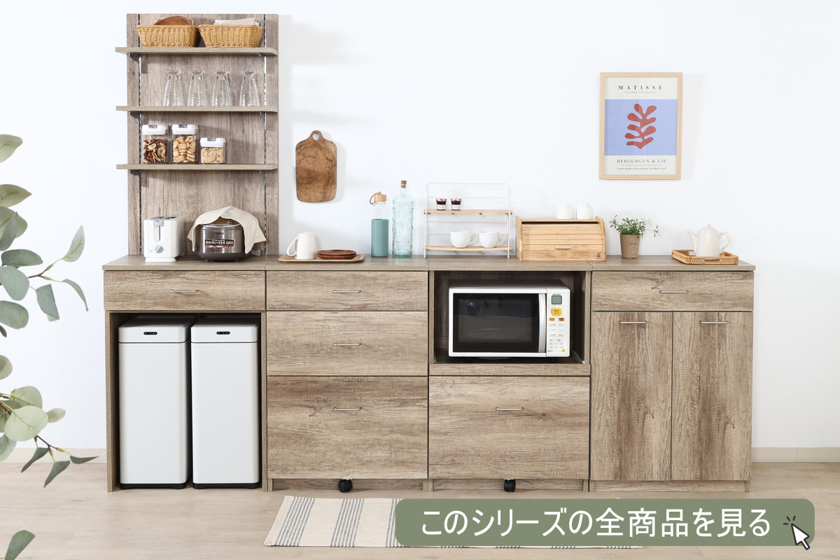 ![]() 【上段】バックボード | ![]() 【下段】ダストボックス上収納 【▲このページの商品】 | ![]() 【下段】レンジボード |