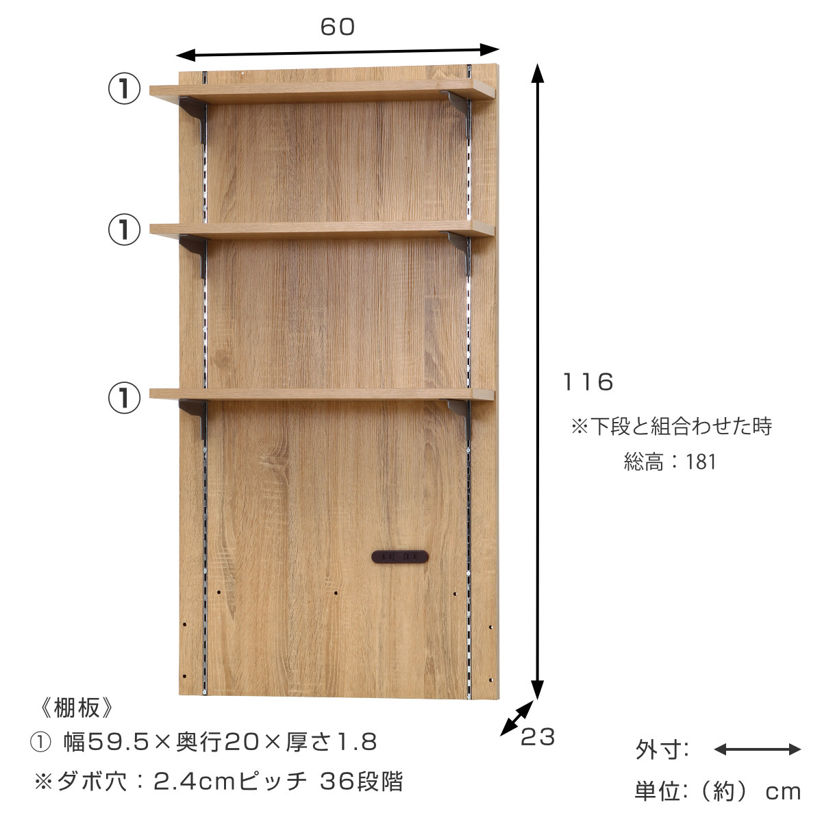| 注意事項 | ※こちらの商品は単独での使用はできません。別売りの下段用の商品と組み合せてお使いください ※木目の出方はそれぞれ異なります ※商品ページ内には別の商品を含む画像を使用しています |