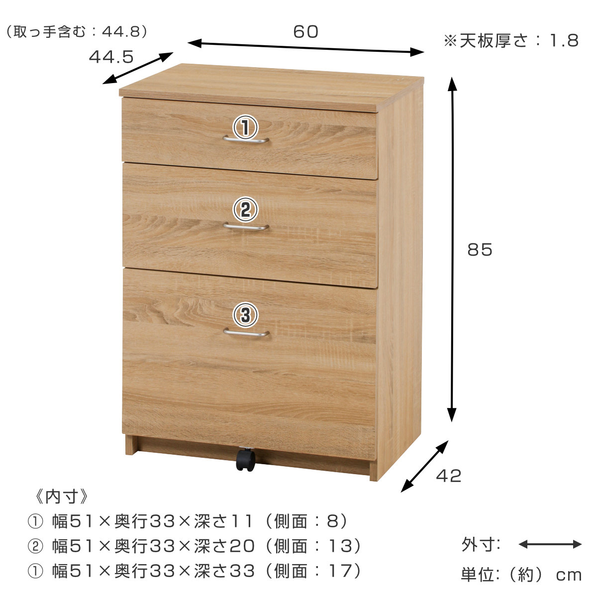 チェスト 幅60cm 引き出し3段 スフィーダ キッチン家具 ( 食器棚 カップボード ラック 収納 棚 キッチン収納 組み合わせ 家具 三杯 作業台 省スペース グレー ナチュラル ) 【ナチュラル】
