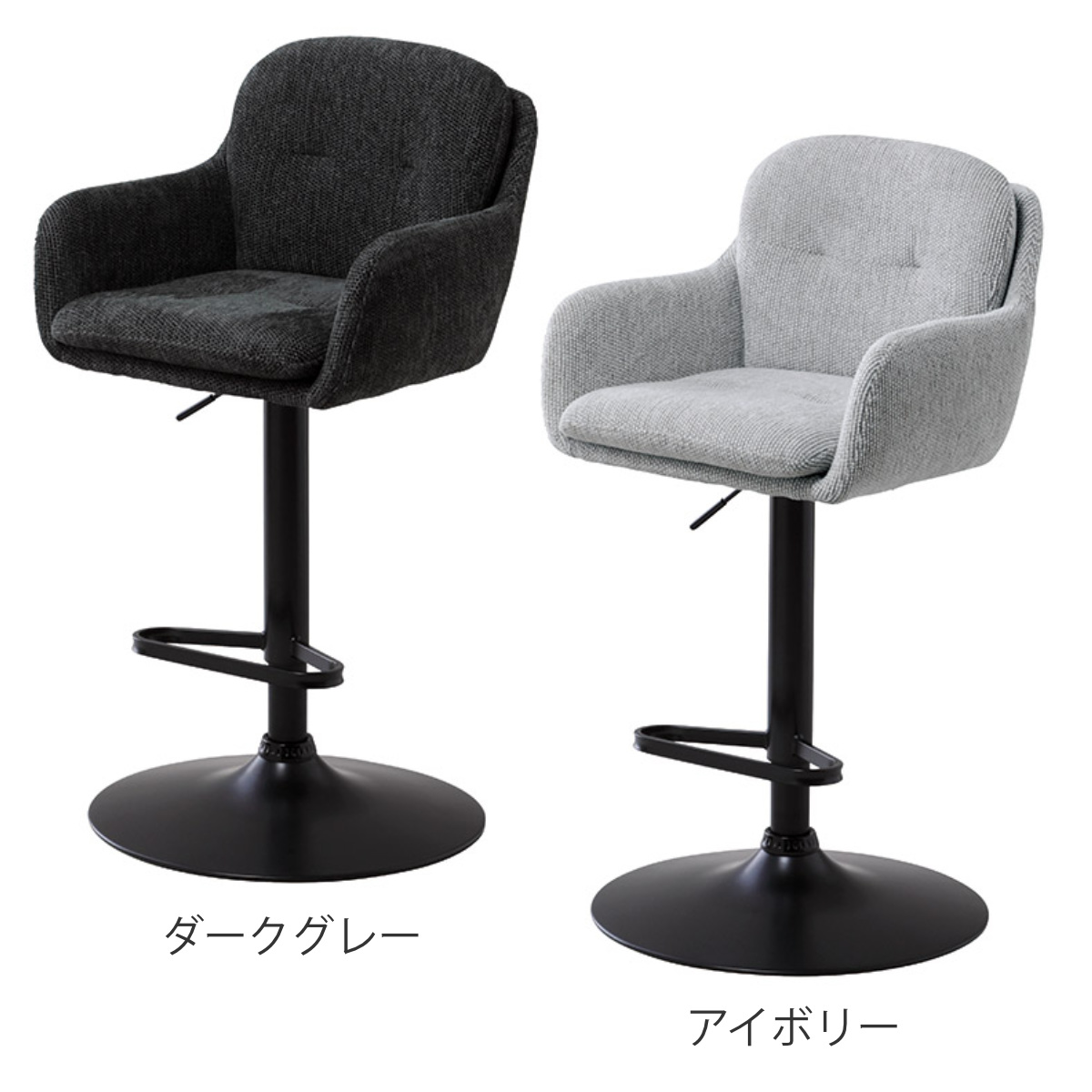 ダイニングチェア 座面高61~72cm 回転 昇降式 カウンターチェア アーク ( バーチェア ハイチェア チェア ダイニング 食卓椅子 ハイタイプ 背もたれ付き カウンター 椅子 ゆったり 座面 フットレスト イス キッチン ファブリック ) 【アイボリー】