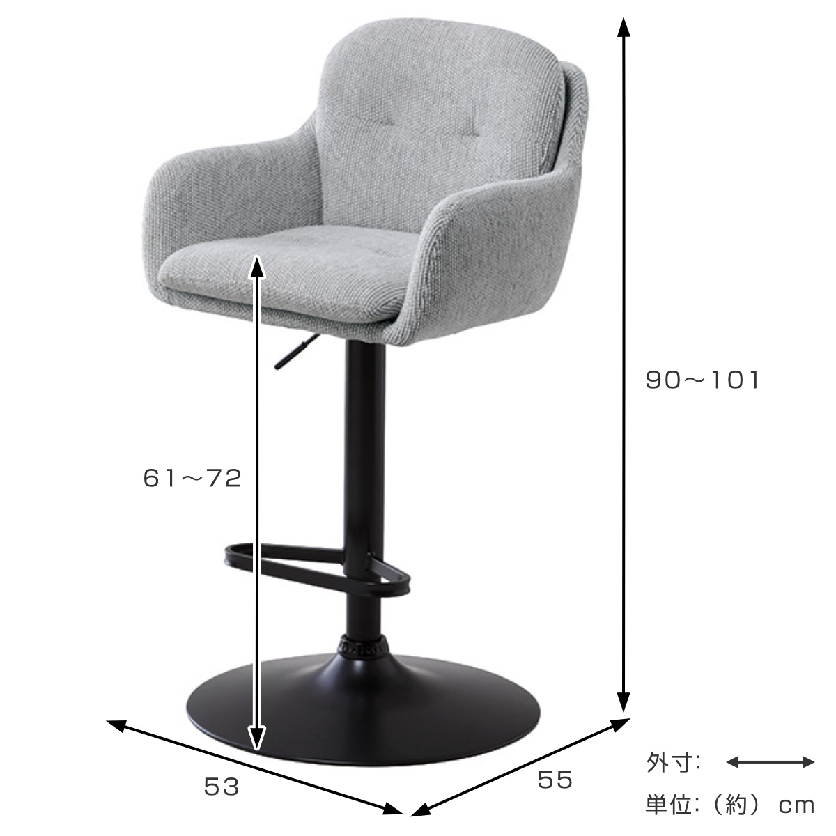 | サイズ | 約 幅53×奥行55×高さ90~101(cm) 座面高:61~72(cm) |