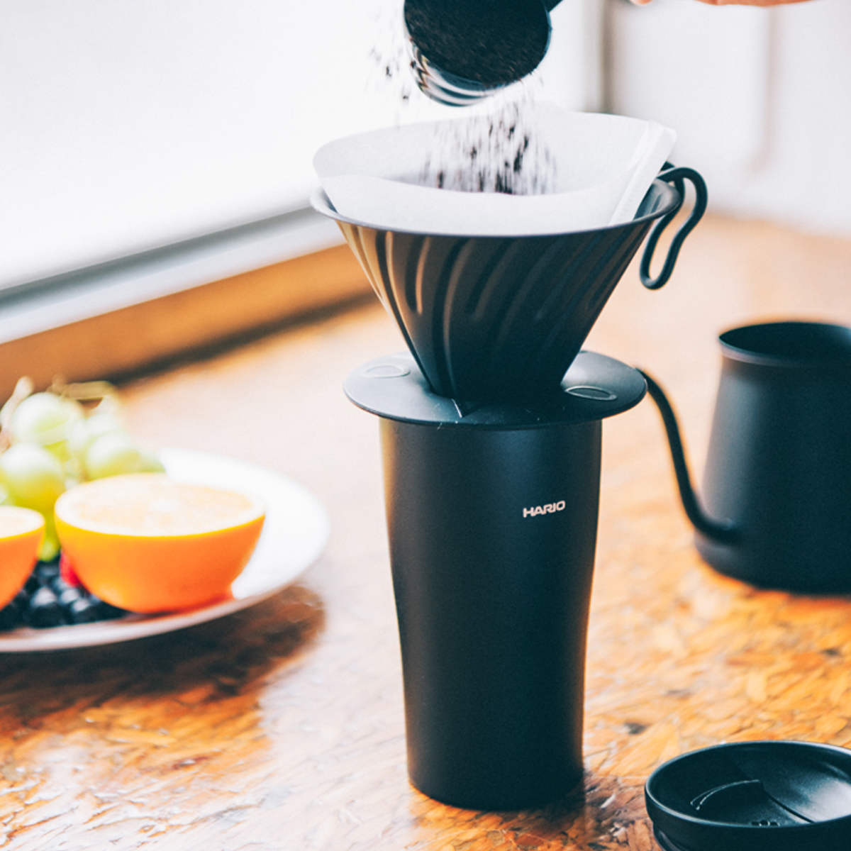 フタを外してドリッパーをのせるとタンブラーに直接コーヒーをドリップできます。コーヒーを温かいまま・冷たいまま愉しむことができます。