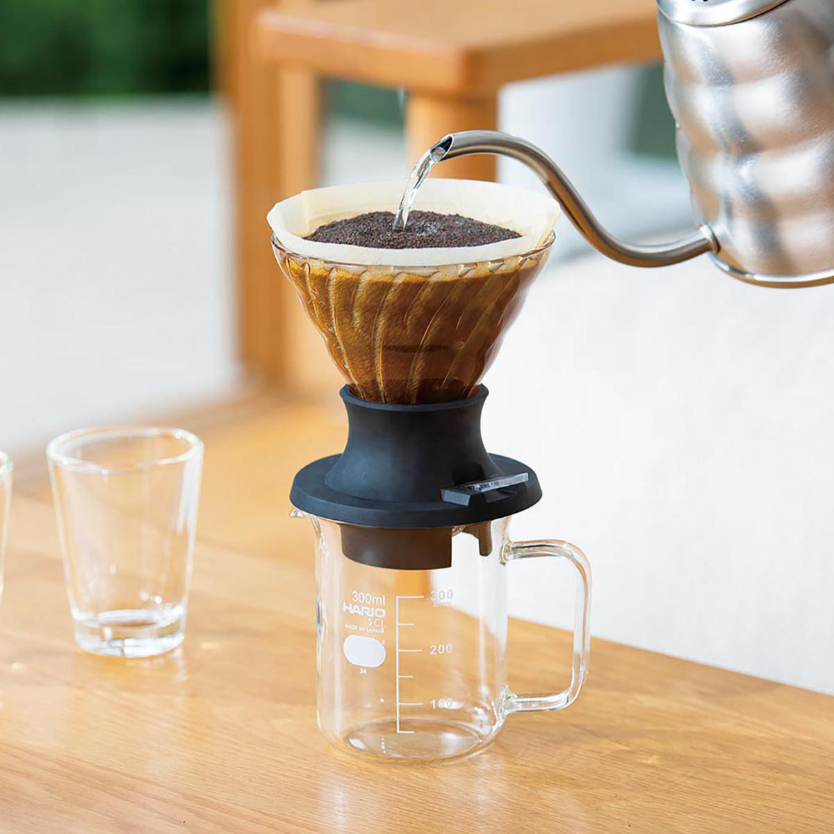ハリオ独自の浸漬式スイッチ構造により、誰でも簡単にベストな抽出タイミングを作り出せる浸漬式ドリッパーです。お湯を注いで、あとは待つだけのシンプル操作で、安定した美味しさを楽しめます。出来上がり量約200mlは、マグカップ1杯分に最適なサイズです。