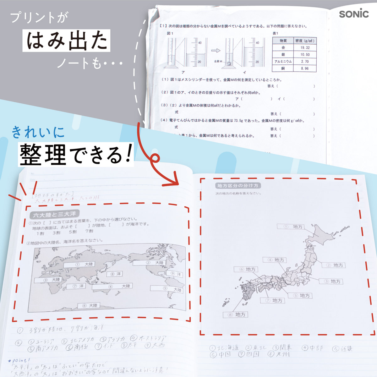 授業プリントをきれいに貼りたい方におすすめのプリントカッターです。切る作業とのり付けが1本でできるため、プリント整理の時短になります。