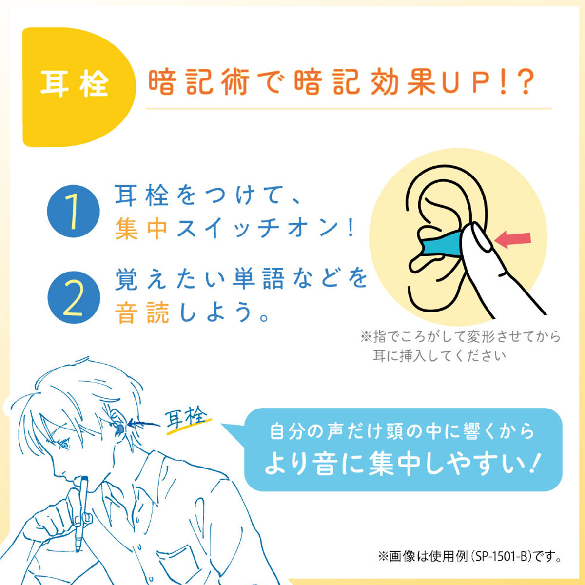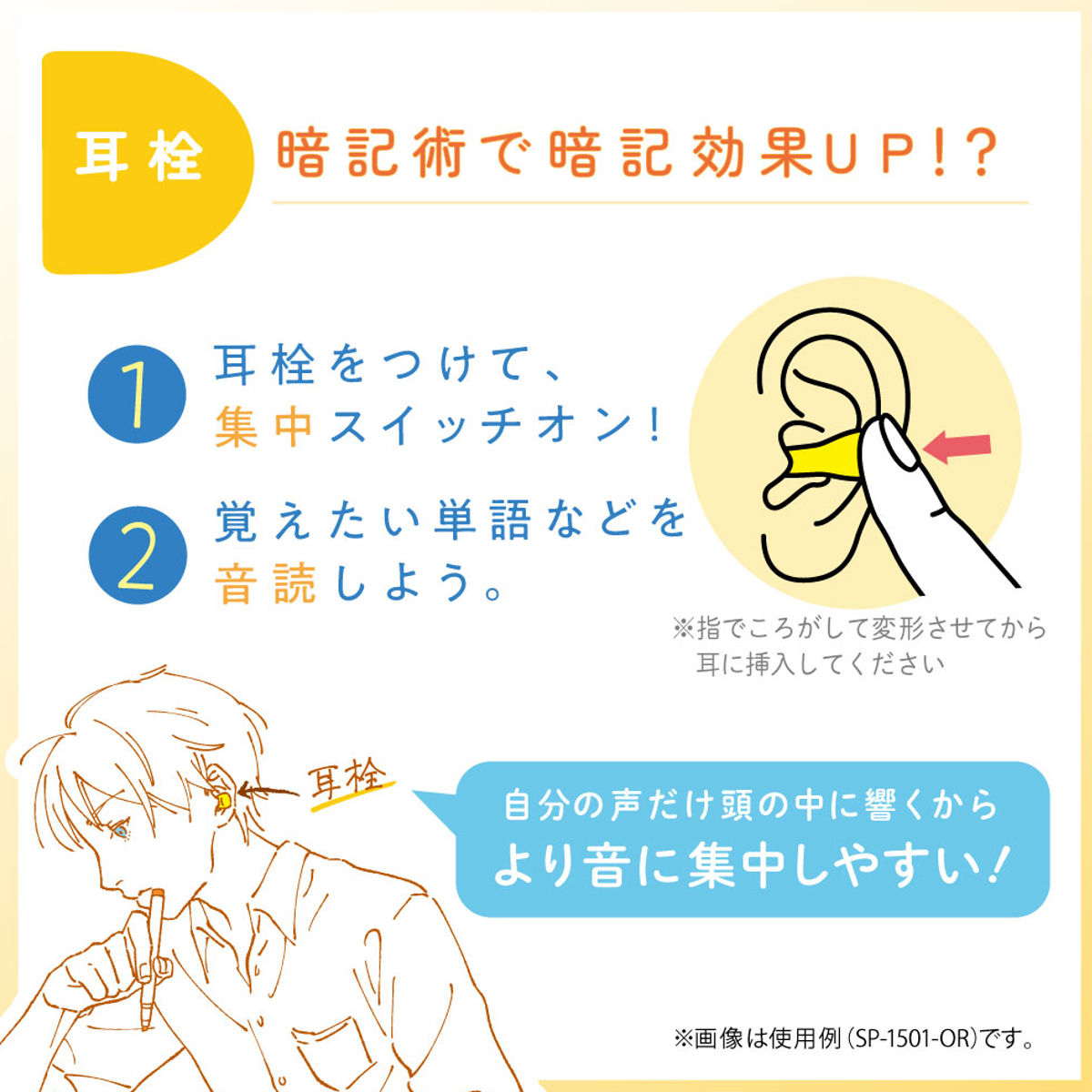 耳栓は試験前のラストスパート、集中力を高めたいときに役立ちます。外出先で勉強するときの騒音対策にもなります。