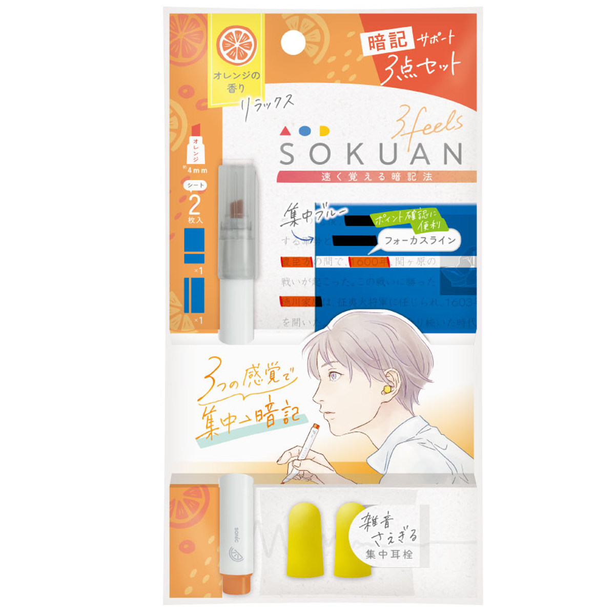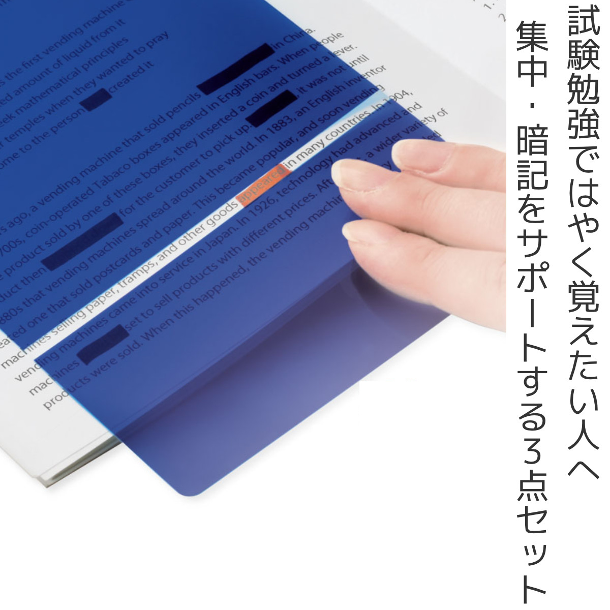 「覚えられない」「雑音が気になって集中できない」…そんな試験勉強のお悩み解消に役立つ3点セットです。ちょっと特別な工夫がされたペン・シート・耳栓が揃ったこちらのセットで、通学通勤時や外出先等どこででも暗記環境を整えることができます。