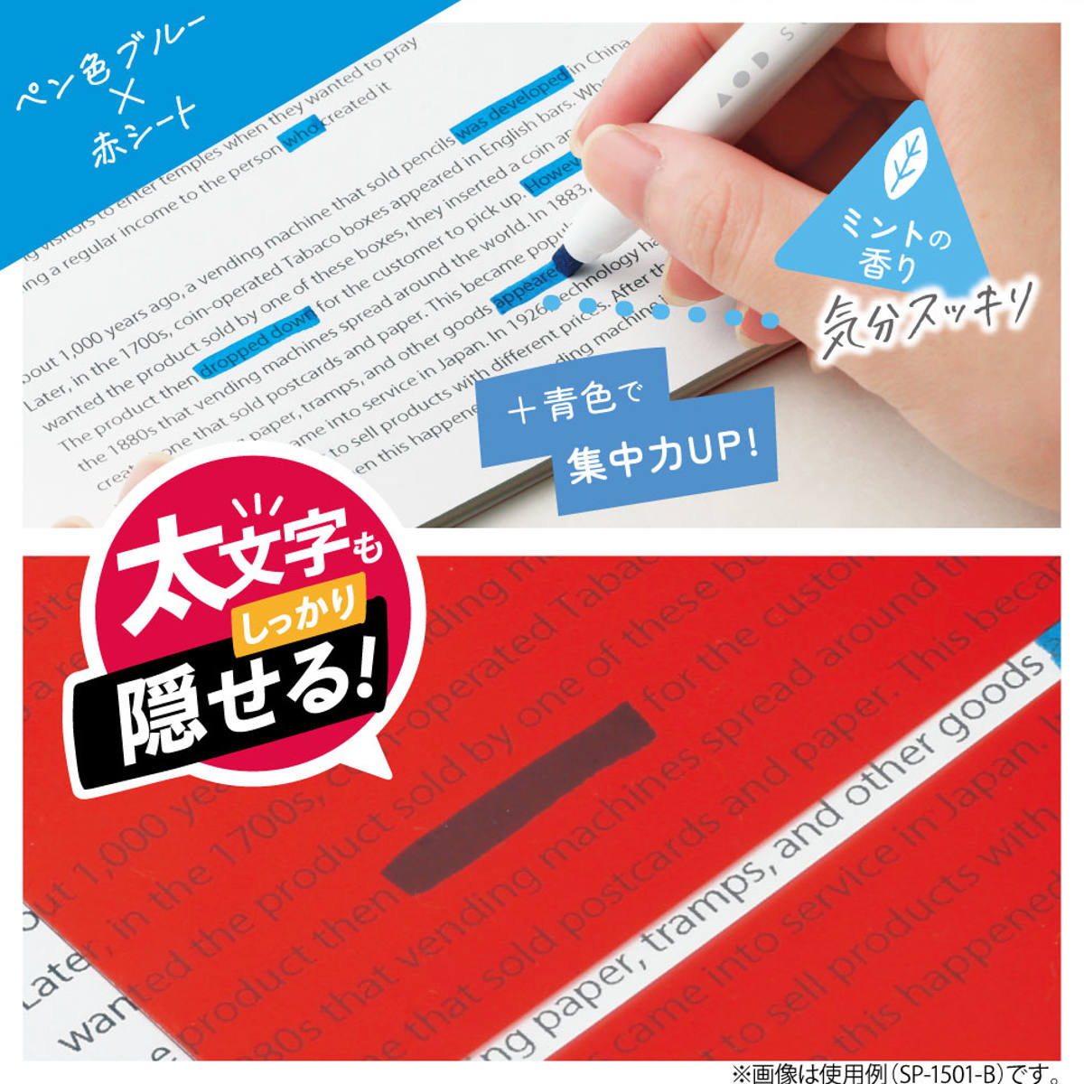 ペンは気分すっきり「ミント」の香り付きで、嗅覚からサポートします。太文字もしっかり隠せるペン先約4mmです。