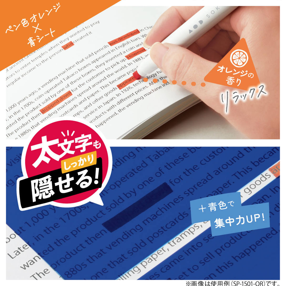 「オレンジ」はオレンジ色ペン×青シートの組み合わせ