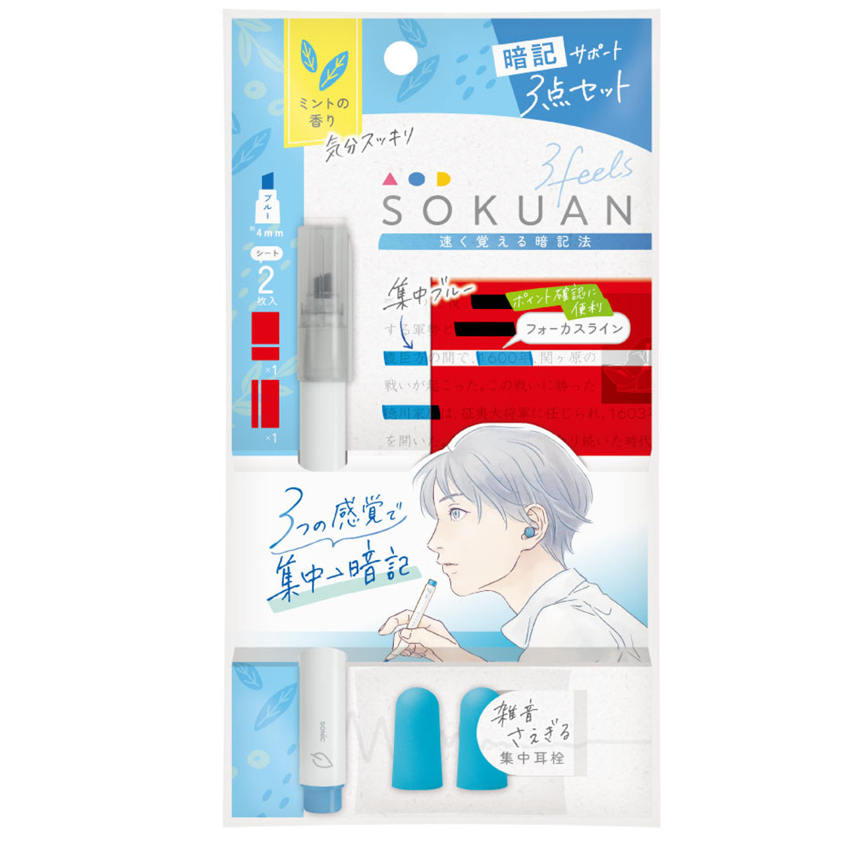 暗記用ペン 2枚シート 耳栓 3点セット 速暗!3feels 文具 ( 暗記マーカー 暗記シート テスト勉強 資格勉強 受験対策 暗記ペン 暗記 ペン シート 効率アップ 暗記用 受験 試験 マーカー 集中 勉強 テスト 文房具 ) 【ミント】