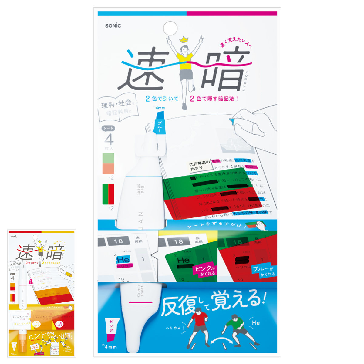 ![]() 集中暗記をサポートするペン、シート、耳栓の3点セット 【▲このページの商品】 | ![]() 2色で引いて覚えるペンとシートのセット |